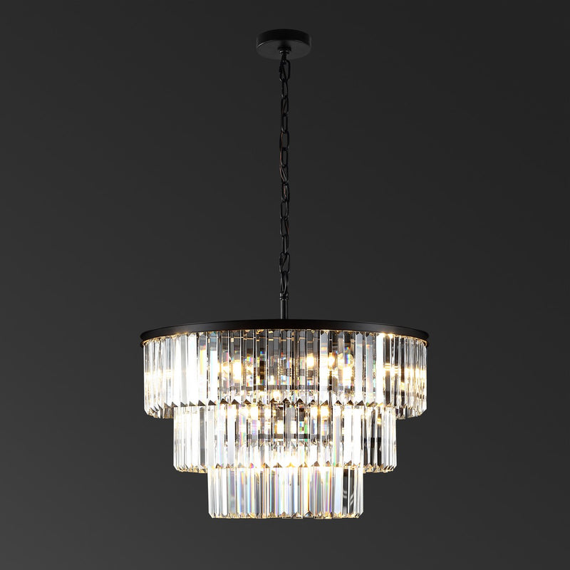This captivating Karissa Chandelier brings undeniable star quality to your d̩cor, making it a must-have for celebrity-chic interiors. Flaunting two cascading tiers of elongated crystal prisms beneath a sleek black crown, Karissa‰۪s unapologetic Old Hollywood glamour instantly transforms any room.