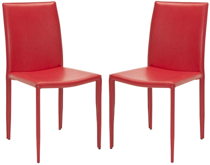 The minimalist aesthetic of the Karna Dining Chair (sold in a set of two) suits decorating tastes both transitional and contemporary. Upholstered with easy-care white bonded leather, these chairs are made to withstand wear and tear from demanding guests while exuding Euro-chic style.