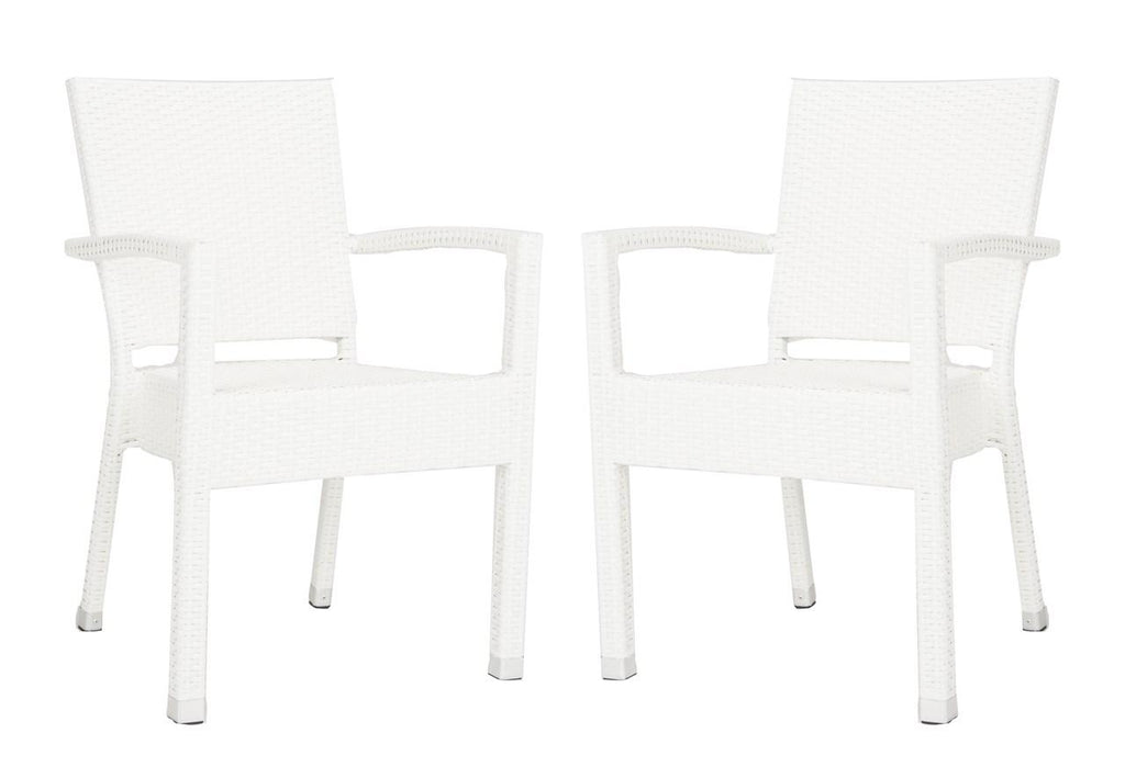 Comfortable and easy-care, the Kelda outdoor arm chair is sold in sets of two for stylish conversation groupings on the patio. Crafted of black wicker with an aluminum frame, this transitional design is sleek and sophisticated.