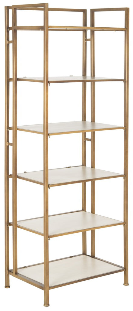 Urban and contemporary, the Kimmy ̩tag̬re is a hard-working yet elegant storage solution. Crafted of white wood shelves and gold-finished iron frame, this well-proportioned ̩tag̬re functions as a bookcase or display piece.