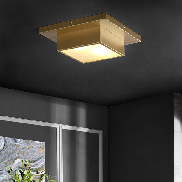 Flaunting Art Deco inspirations with a glamorous contemporary twist, this Kylin Flush Mount pulls out all the stops. Kylin shines with Old Hollywood charisma in its square stepped silhouette, brilliantly shimmering in a rich brass finish, making it a mainstay in celebrity-chic interiors.