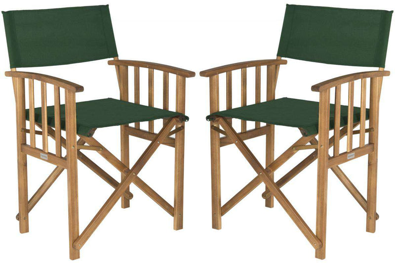 Give your porch or patio a touch of Hollywood glam with a pretty and practical set of two Laguna outdoor director chairs.åÊ These folding chairs are crafted of eco-friendly acacia wood in a natural finish with spiffy green all-weather Textilene fabric.
