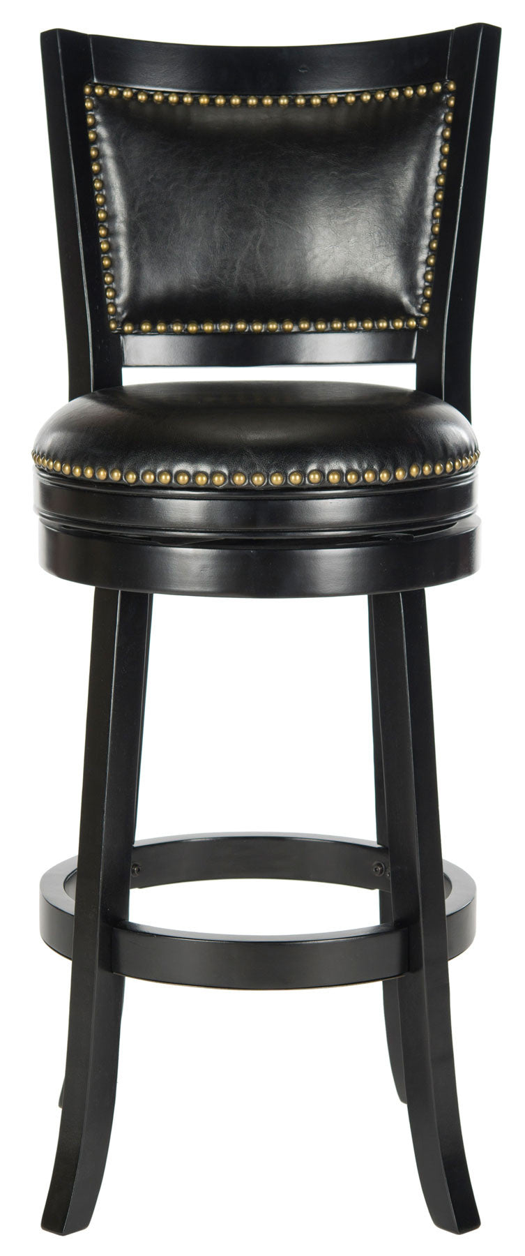 With its elegant low-profile backrest, the Lazzaro Swivel Barstool is as comfortable as it is good-looking. Upholstered with dark brown PU leather with bronze nailhead trim, this barstool is crafted of eco-friendly rubberwood in a sierra brown finish.