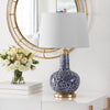 This Leia Table Lamp provides the definition for today‰۪s classic contemporary d̩cor, beautifully pairing timeless motifs with modern hues and finishes. The delicately painted blue rosette pattern on Leia‰۪s ceramic body is fabulously upgraded with its sleek gold finished base and white tapered drum shade.
