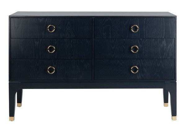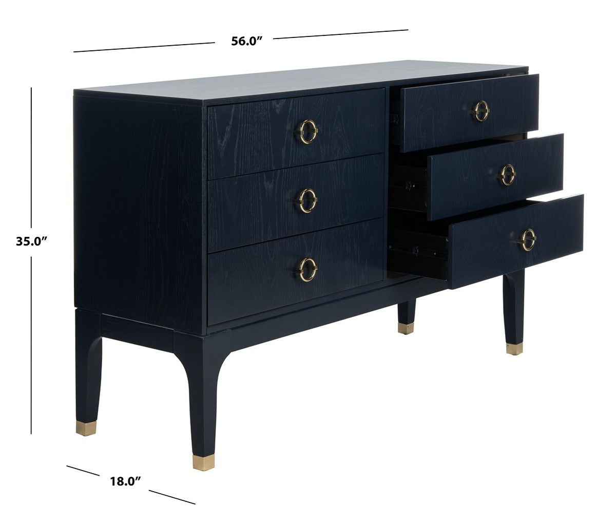 Elegant and refined, this contemporary dresser brings style and substance to any interior. Designed with a blend of clean lines, chic hardware and a timeless navy finish, its ample six drawers add storage to any chic bedroom.