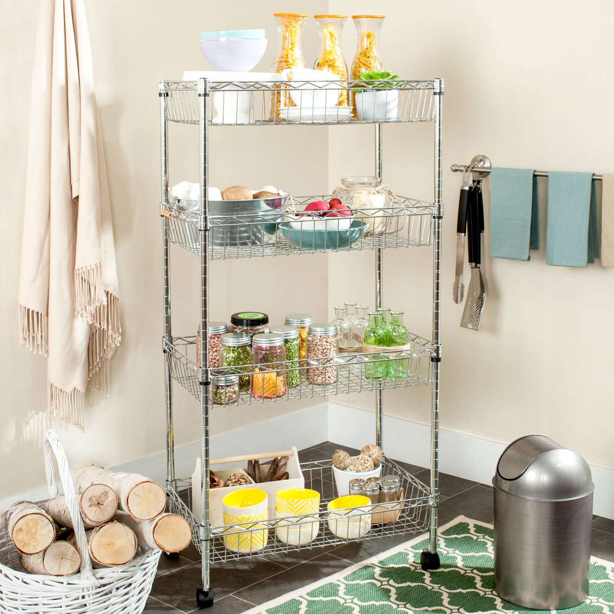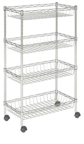 With four tiers, the Mario 4 Tier Basket Rack is a modern storage marvel. Its layers of capacious basket-style storage allow contents to stay in place as favorite items are wheeled from room to room. Use for crafting, kitchen items or a modern closet.