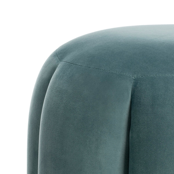 Gracious and charming, this petite Maxine Ottoman makes a grand statement in any living room. Designed to highlight the meticulous channel tufting on its plush seafoam velvet, its glamorous gold finish gives makes Maxine a classic beauty.