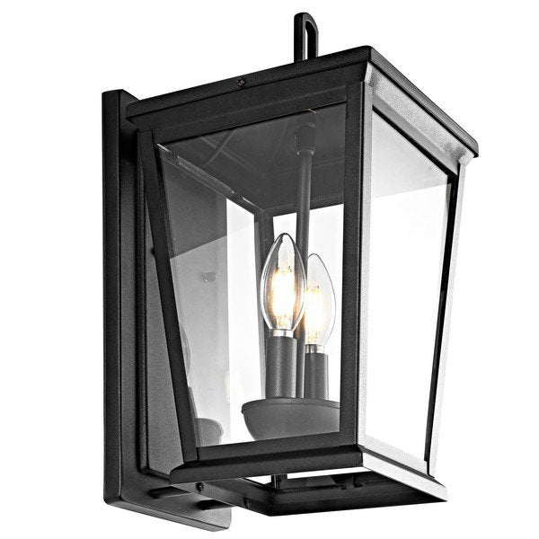 Elevate any entrance with this refined traditional outdoor hanging wall lantern. A must have for the gracious home, its classic design is crafted with the strength and beauty of black metal. Designers love the 3 light candelabra inside its clear glass.
