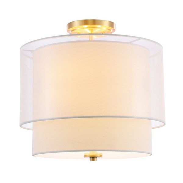 A modern take on a timeless design, this Namida Flush Mount is an absolute essential in elegant contemporary interiors. Namida‰۪s clean-lined off-white fabric shade is given additional depth with a concentric glass one, and its gold iron details make it shine in any room.