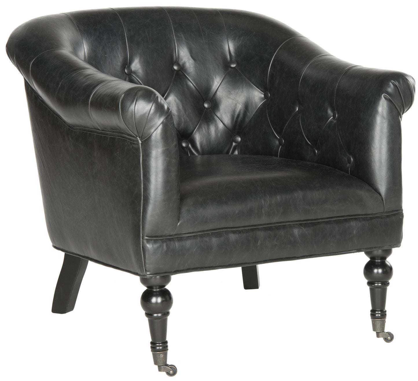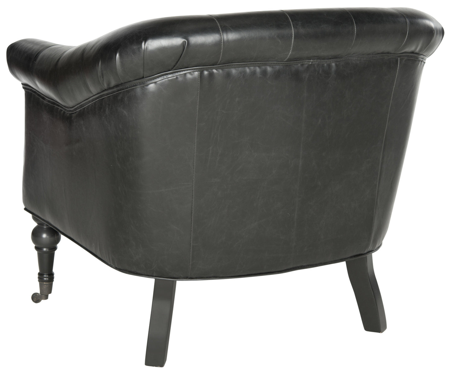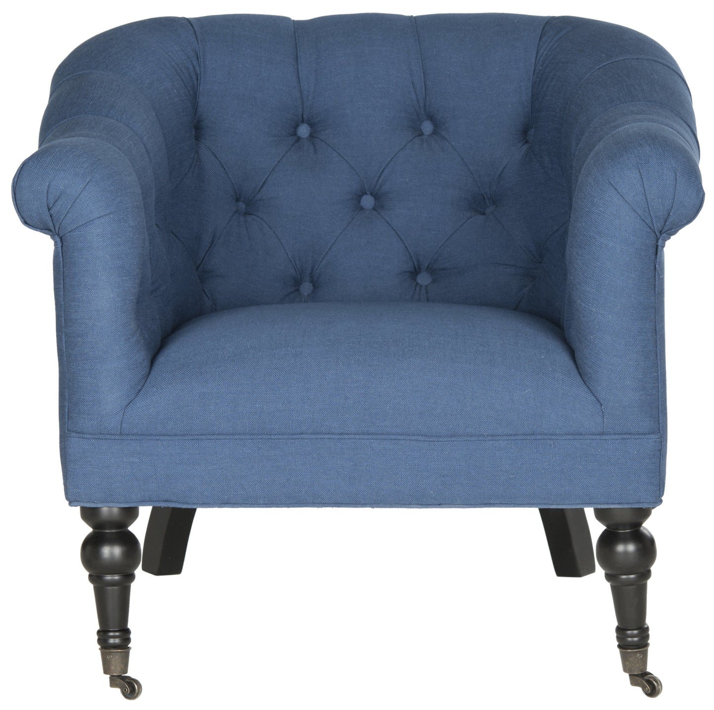 Gracious and inviting, the traditionally-styled Nicolas club chair is equally good-looking in transitional rooms. The texture of linen in pretty steel blue is accented with beautifully draped rolled arms, button tufting and turned birch legs on casters.