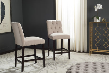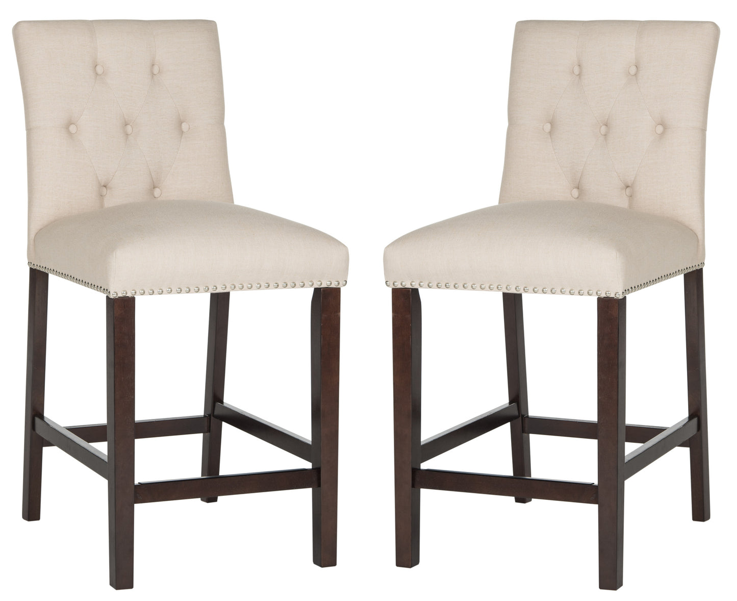 Plush and elegant, these contemporary counter stools (set of 2) bring modern luxury to the table. Ideal for bijoux spaces, their pied a terre style is classically chic. A tastemaker favorite, sturdy espresso legs make them investment pieces.