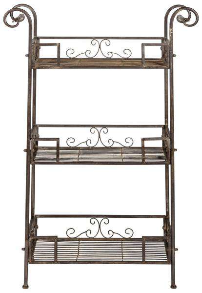 Nostalgia abounds in the Victorian styling of this versatile three-tier antique white outdoor shelf. Whether used as plant stand or decked out with desserts and dinnerware, this pretty iron piece exudes the charm of days gone by and a genteel lifestyle.