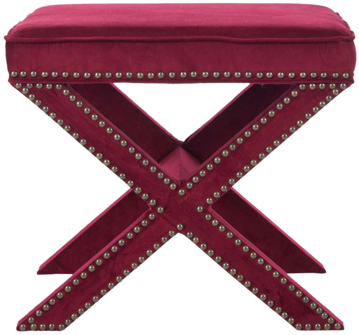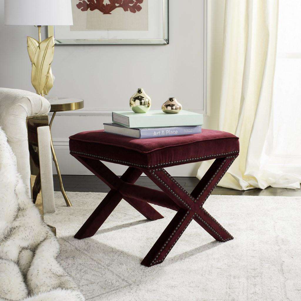 Safavieh Palmer Ottoman - Brass Nail Heads - Red Velvet