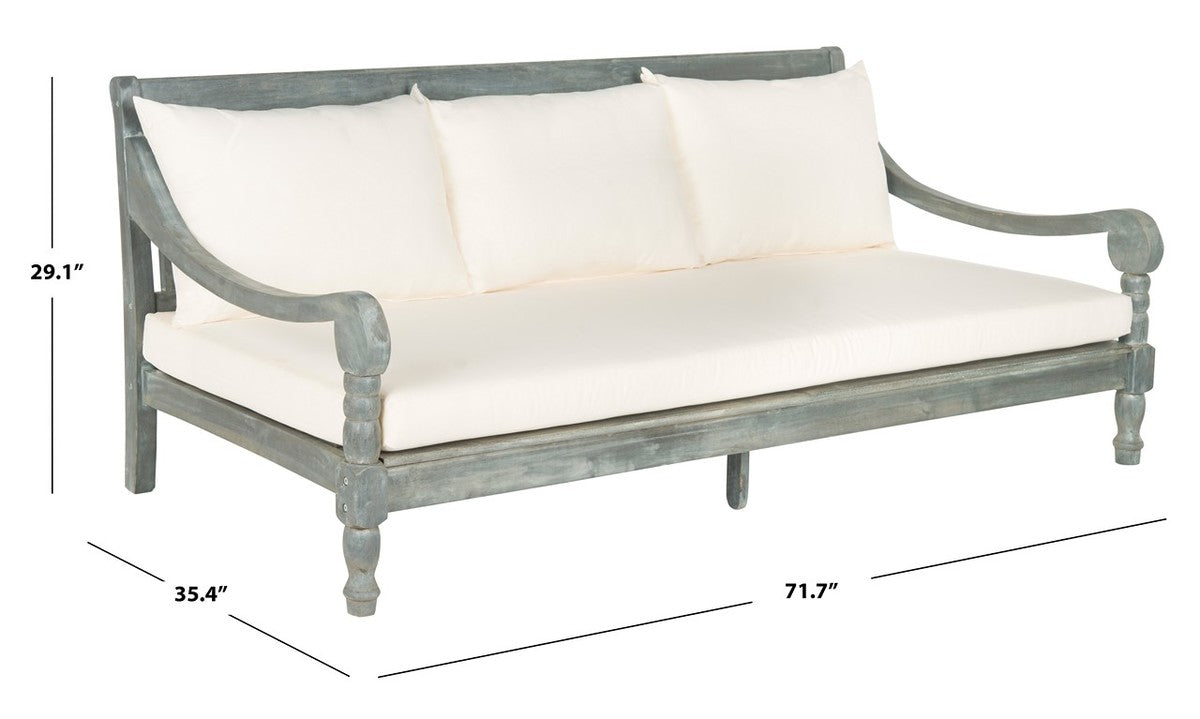 The ultimate indulgence, the Pasadena daybed recalls the casual elegance of a bygone era with generous proportions and classic British styling. Crafted of eco-friendly natural acacia wood with taupe all-weather cushions, it encourages luxe lounging.