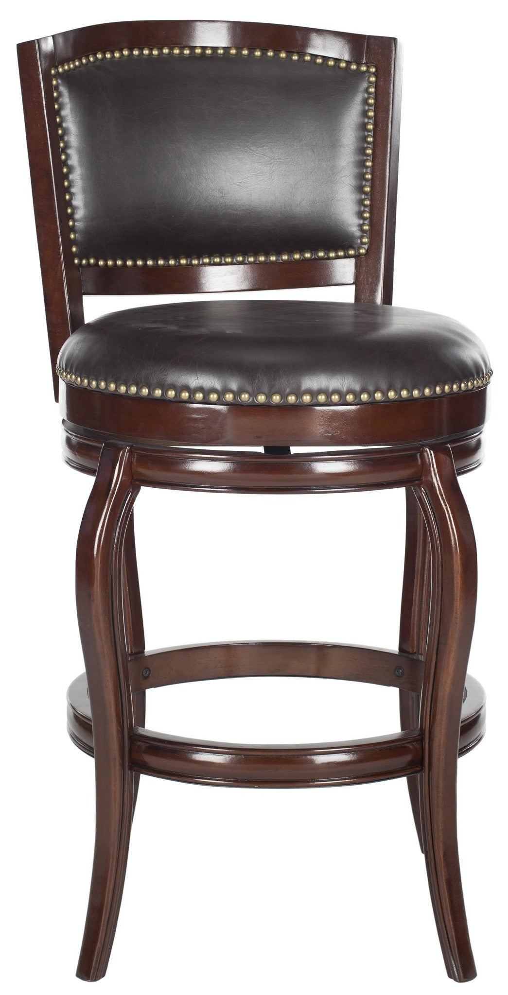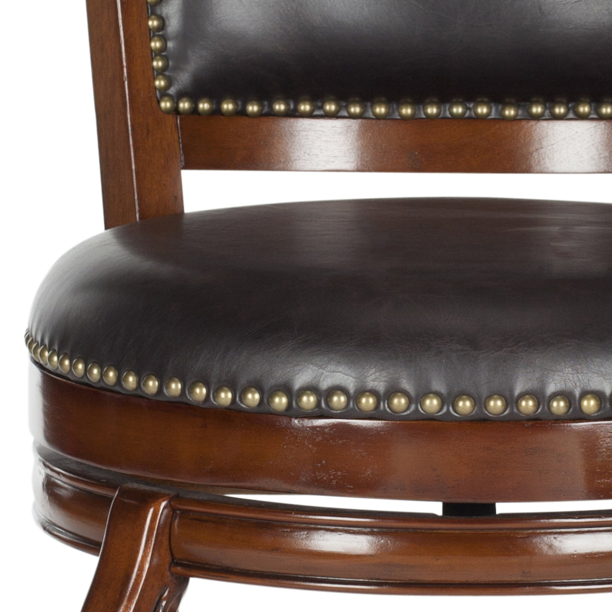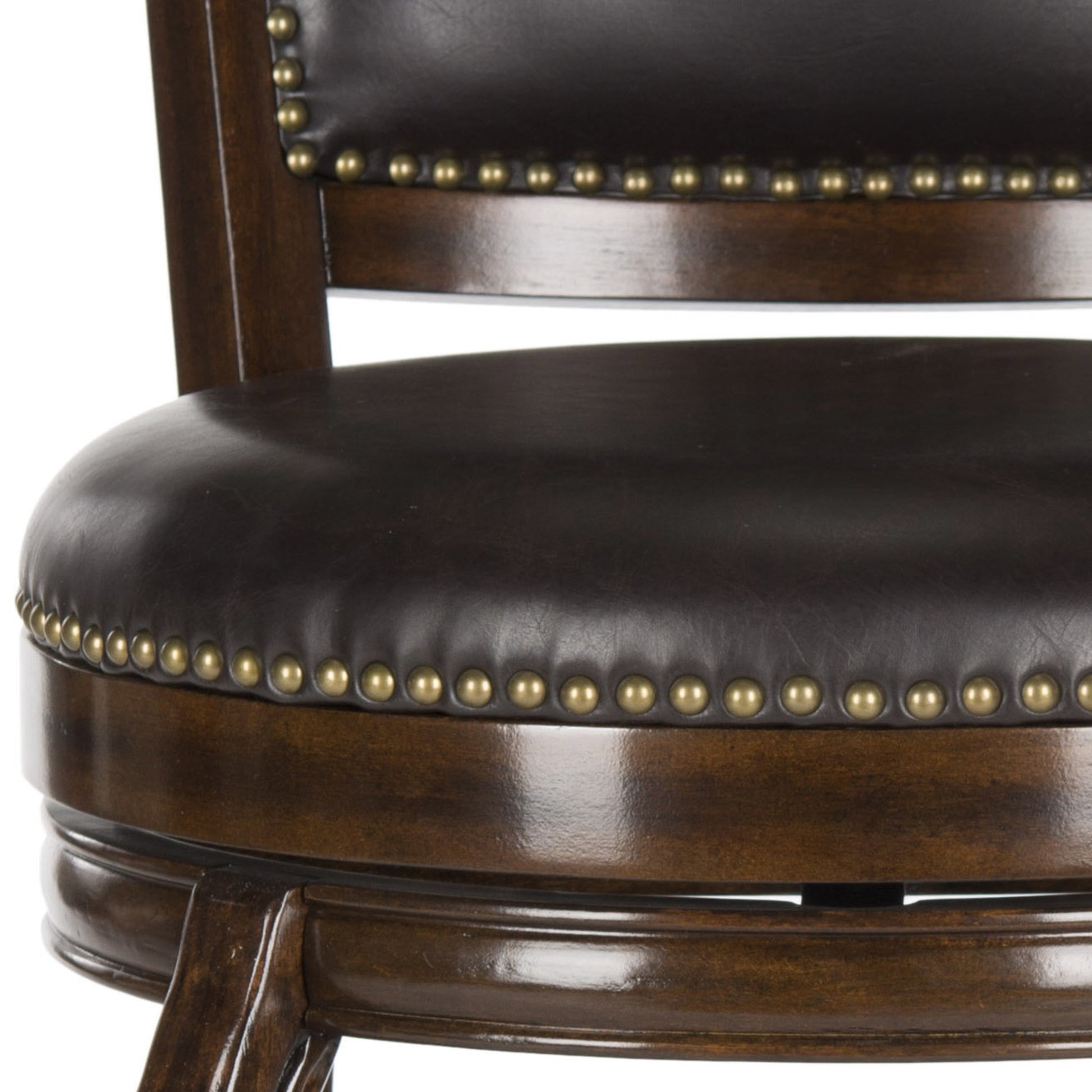 Truly transitional, the Pasquale Swivel Barstool conjures images of leisurely afterNons in chic Italian cafes and eNtecas. Upholstered with dark brown PU leather with bronze nailhead trim, Pasquale is crafted of eco-friendly rubberwood in sierra brown.