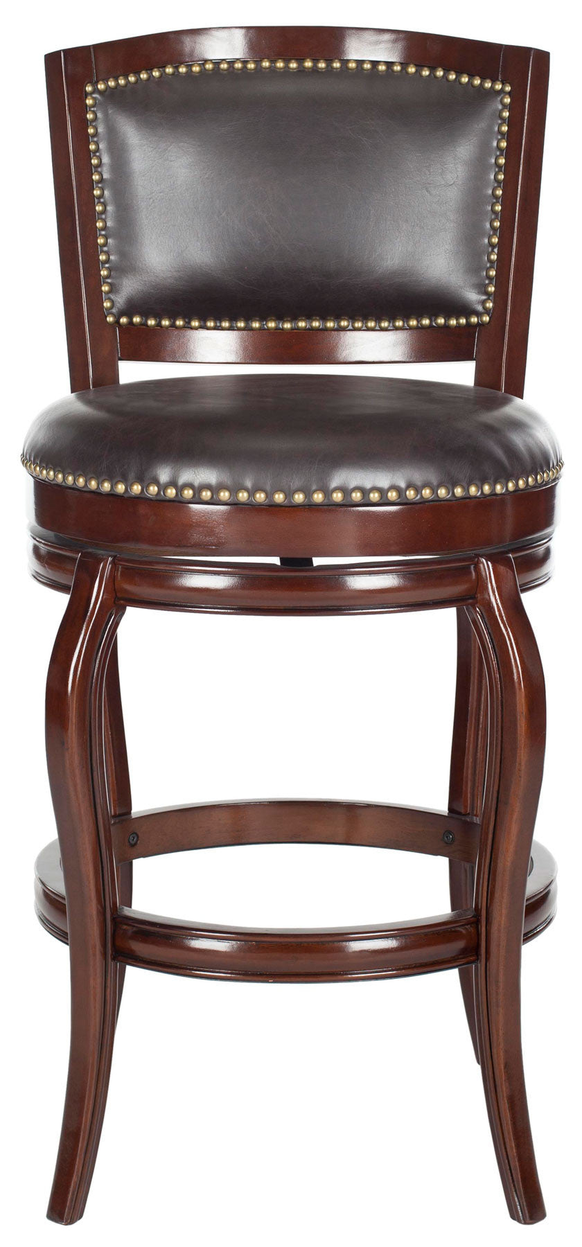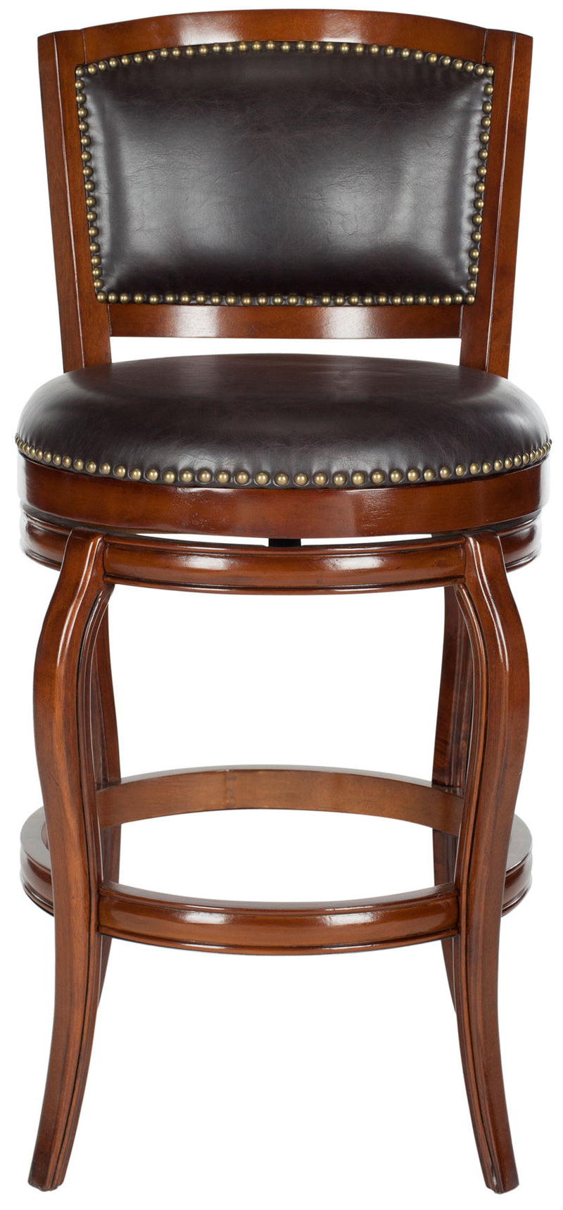 Truly transitional, the Pasquale Swivel Barstool conjures images of leisurely afterNons in chic Italian cafes and eNtecas. Upholstered with dark brown PU leather with bronze nailhead trim, Pasquale is crafted of eco-friendly rubberwood in sierra brown.