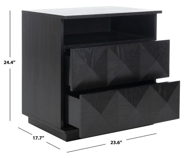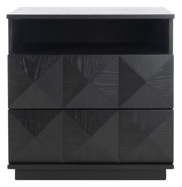 Designed to be a contemporary heirloom, this beautiful black 1 drawer nightstand is a designer favorite. Each rich geometric detail is finely crafted so its luxurious texture and solid wood construction is illuminated from every angle. It‰۪s a new classic.