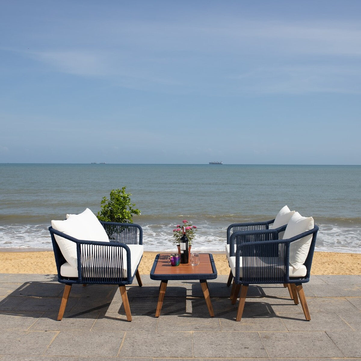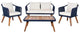 Update any outdoor area with this contemporary rope 4-piece living set. A design investment, its natural eucalyptus wood and grey nylon rope construction lend durability and mod retro style, while generously filled cushions ensure instant relaxation.