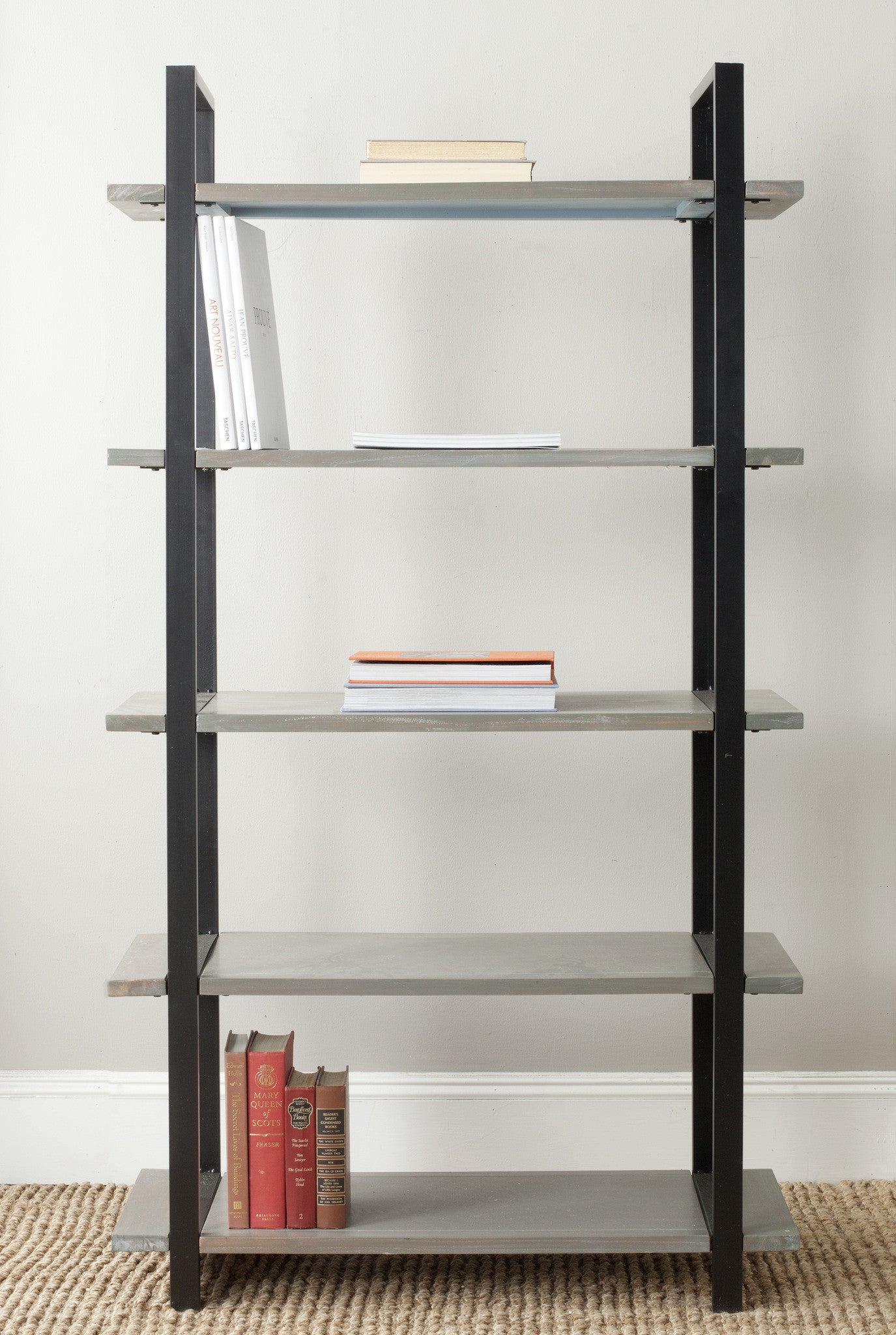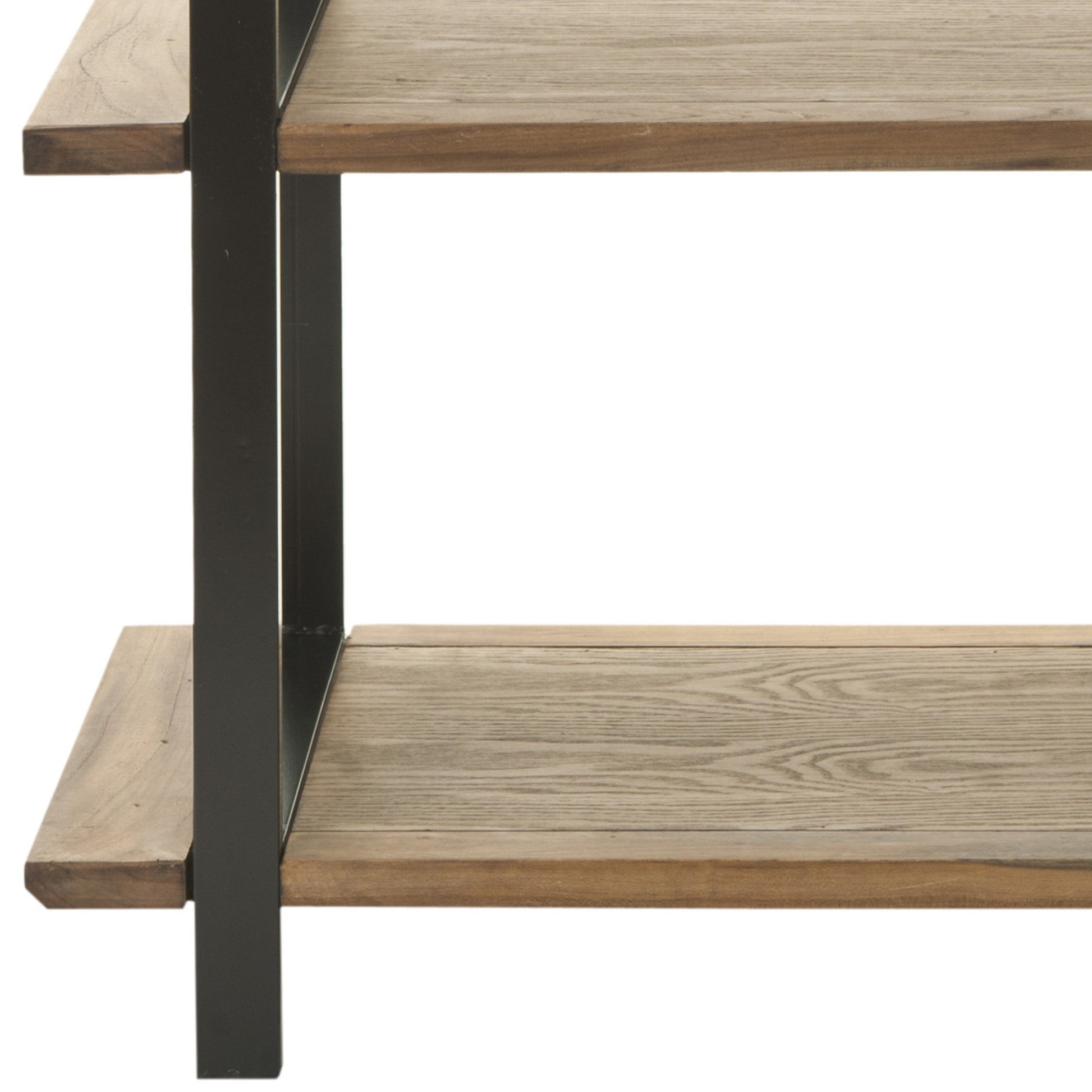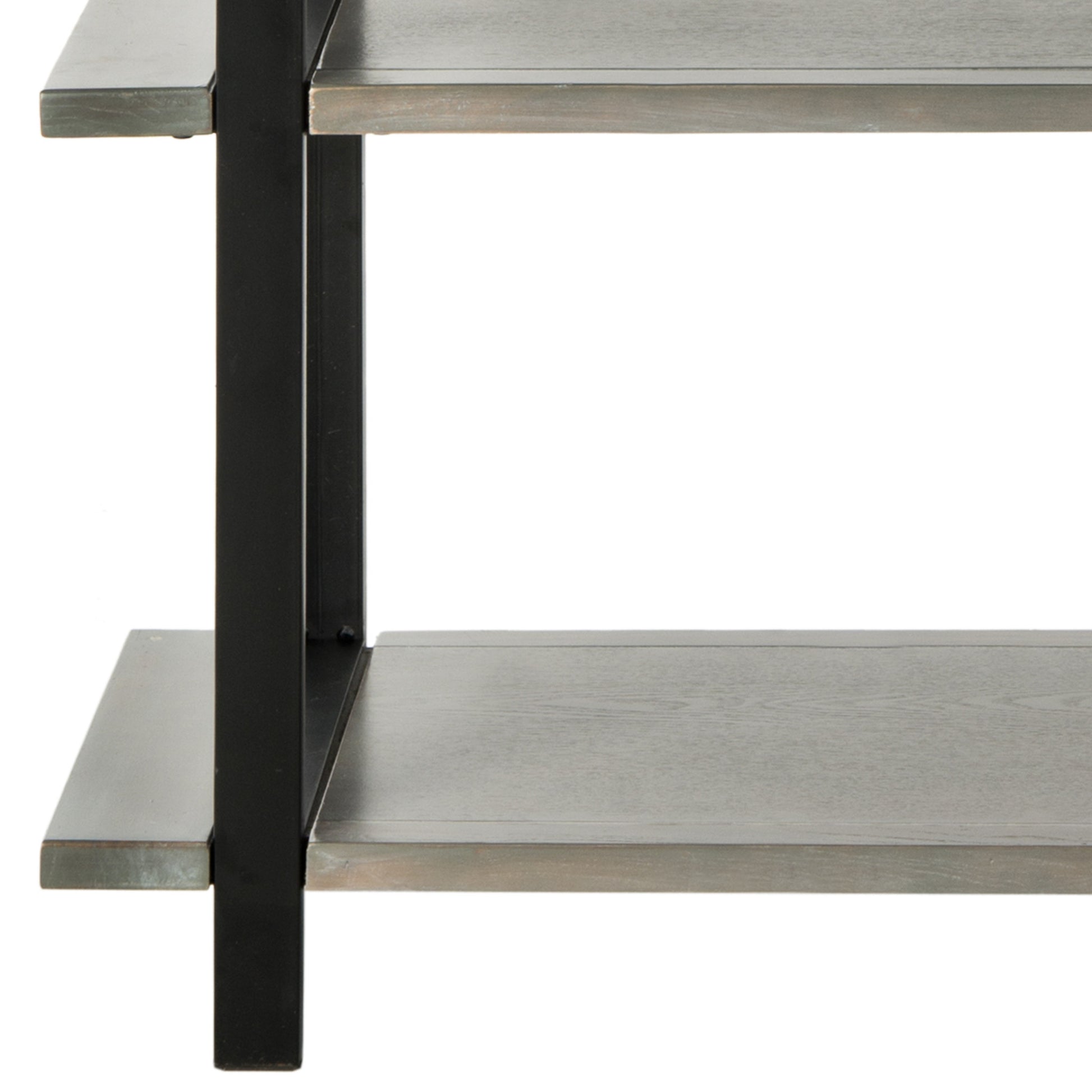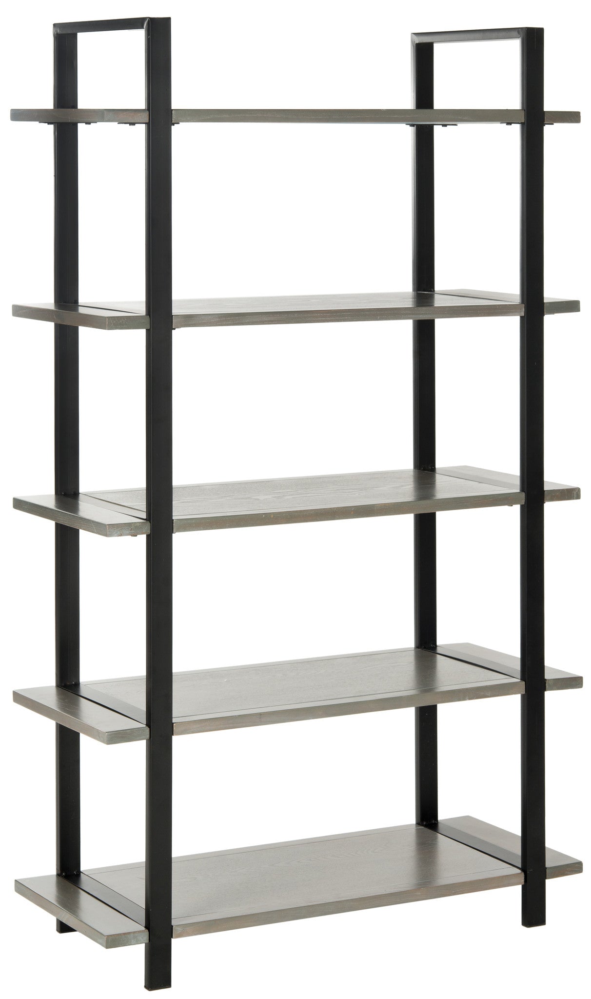 Industrial and contemporary, the Scott etagere boasts brown-toned elm shelves that seem to float on wrap-around frames of dark metal. Ideal for any room in the home and perfect for the office, this sophisticated piece makes a statement on its own and a dramatic architectural look in pairs. Use the Scott etagere to store favorite books and curios in style.
