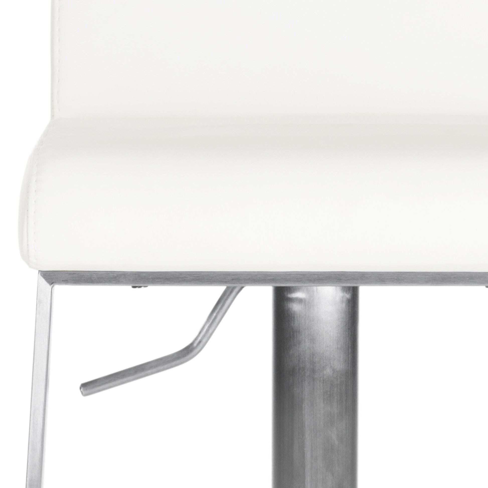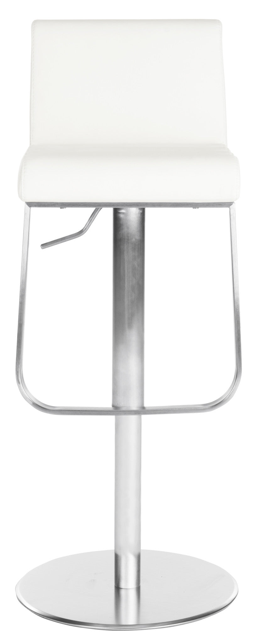 The epitome of less is more home fashion, the Stanley Gas Lift Swivel Barstool brings minimalist lines and adjustable height for your seating pleasure. Crafted with a round stainless steel base, pedestal and footrest, Stanley features a comfortable seat upholstered in bonded black leather. The seat height can be positioned from 24" to 33.1". Assembly required.