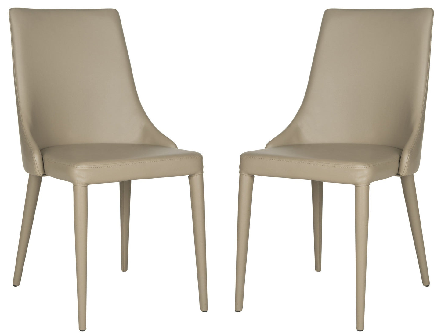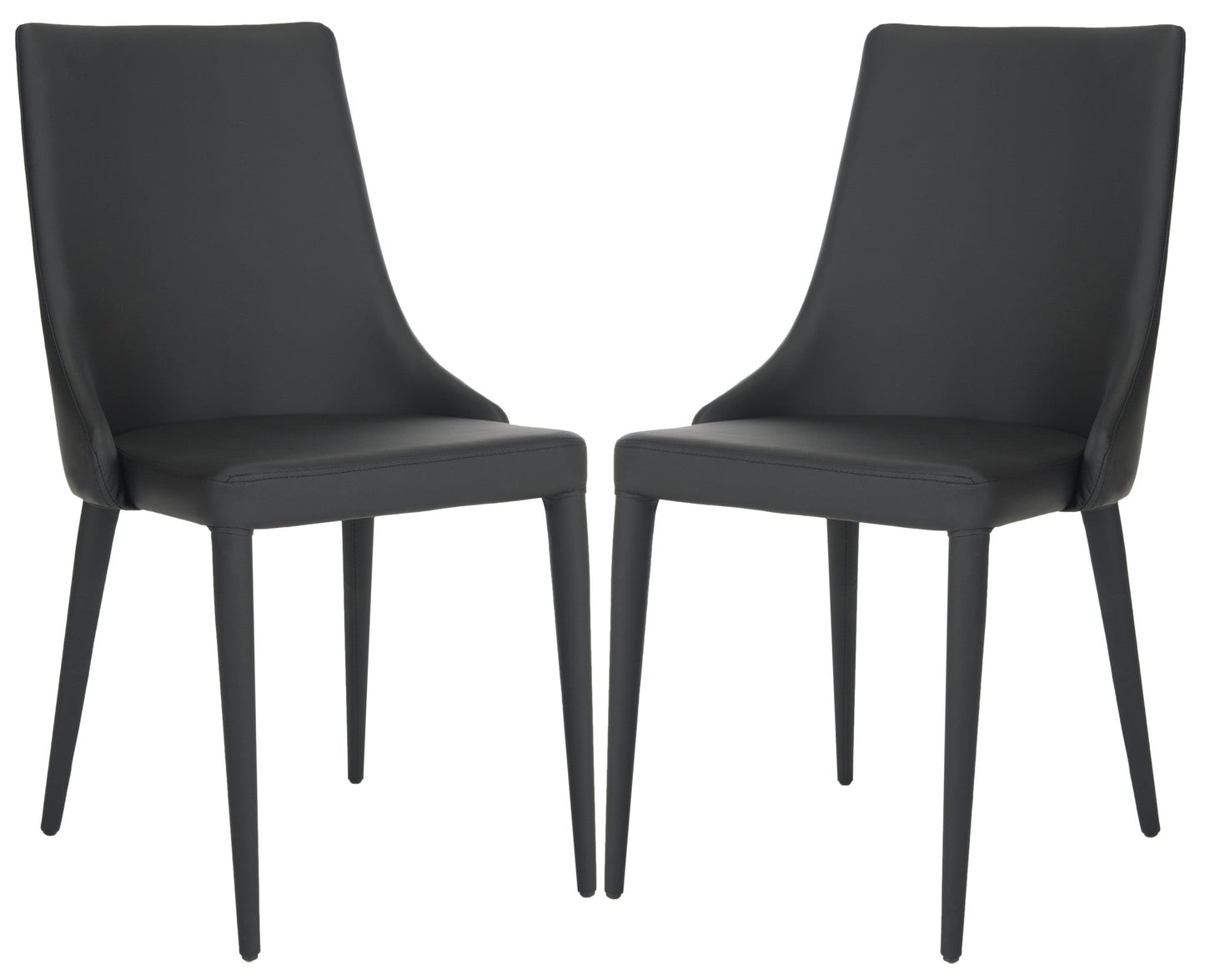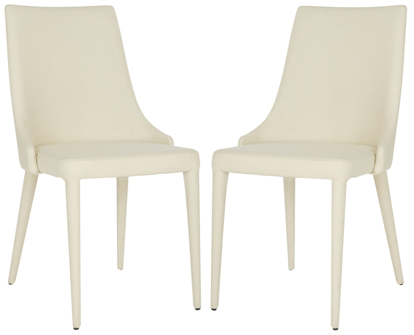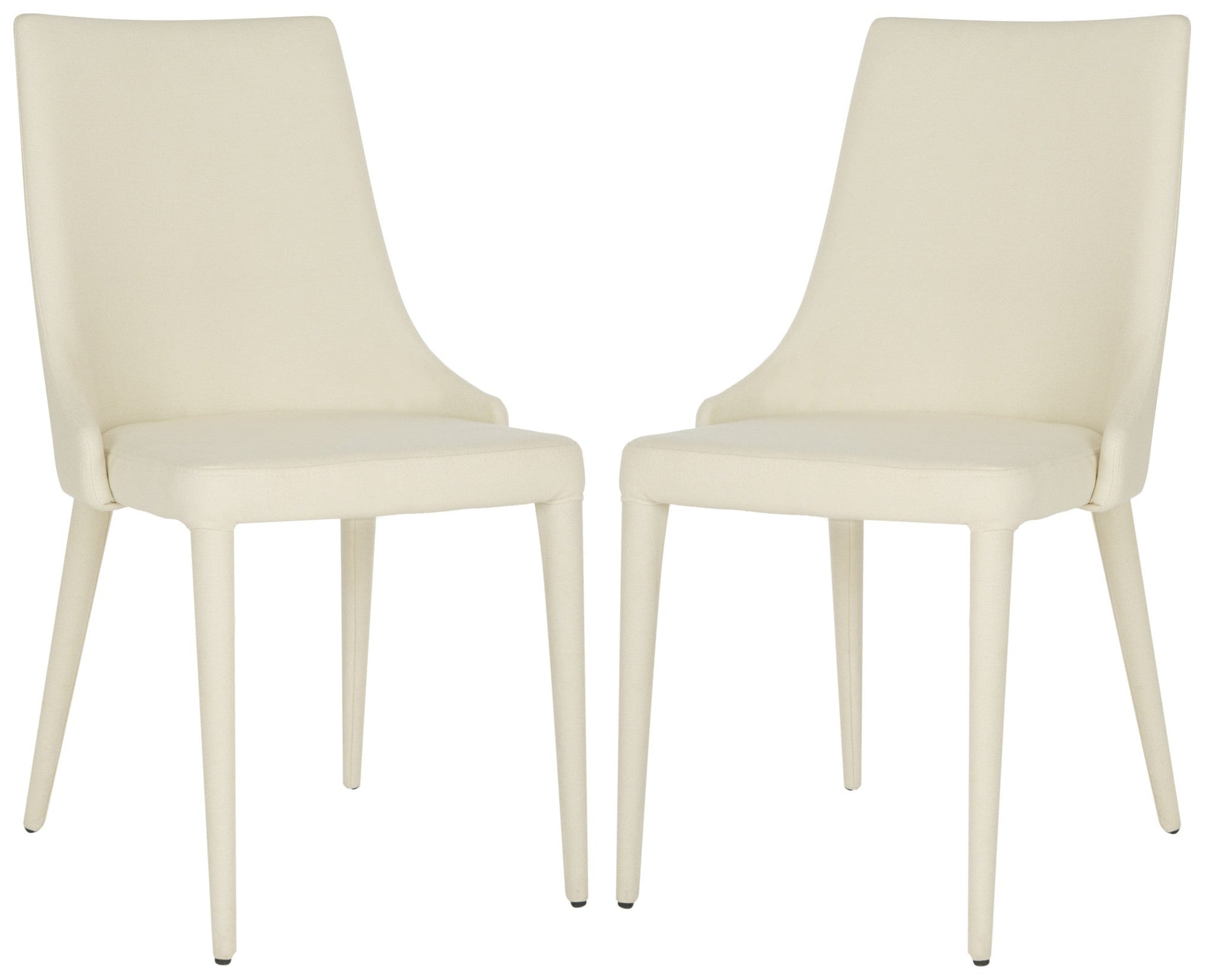 The white chair becomes an ideal dining companion when it's crafted of easy-care PU leather and a sturdy iron frame. This smart set of two side chairs combines the sleek style of the deco barrel chair with contemporary lines inspired by London's skyline.