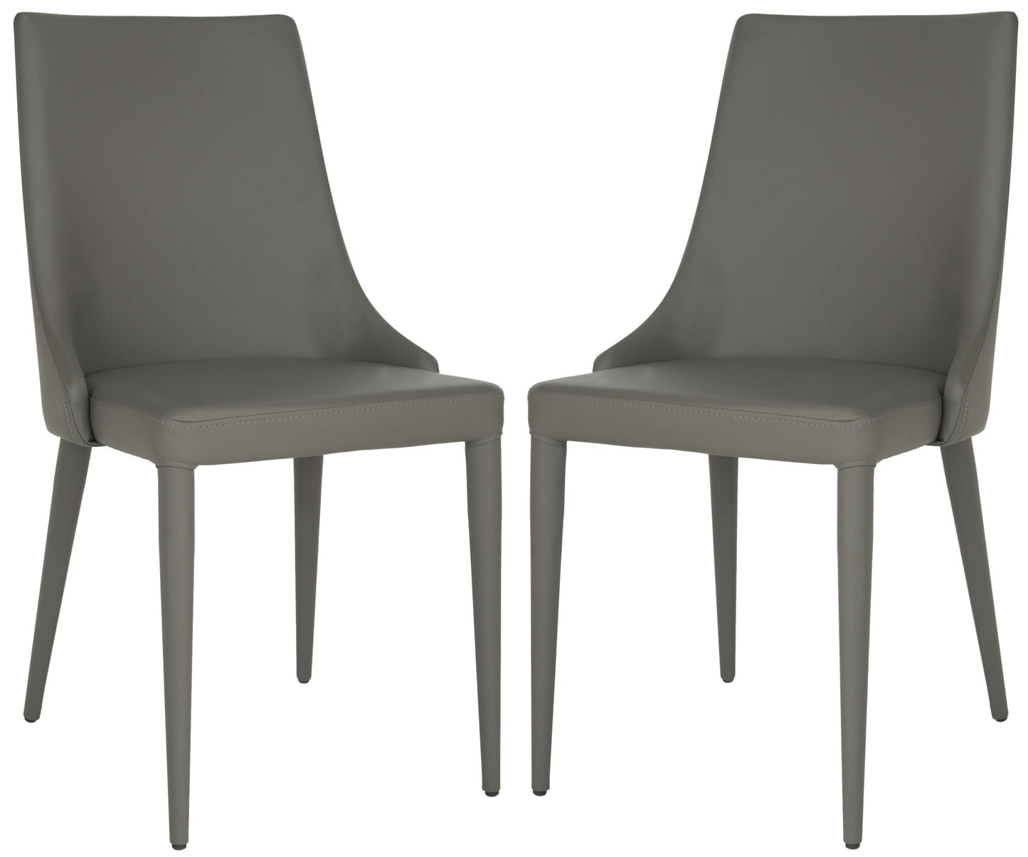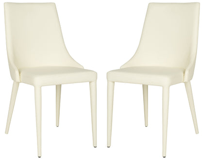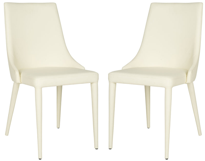 The white chair becomes an ideal dining companion when it's crafted of easy-care PU leather and a sturdy iron frame. This smart set of two side chairs combines the sleek style of the deco barrel chair with contemporary lines inspired by London's skyline.