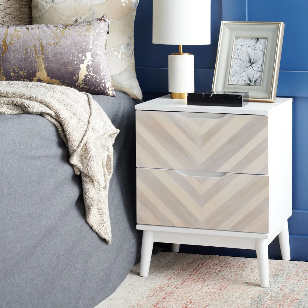 Safavieh Tay 2 Drawer Patterned Night Stand - White Washed