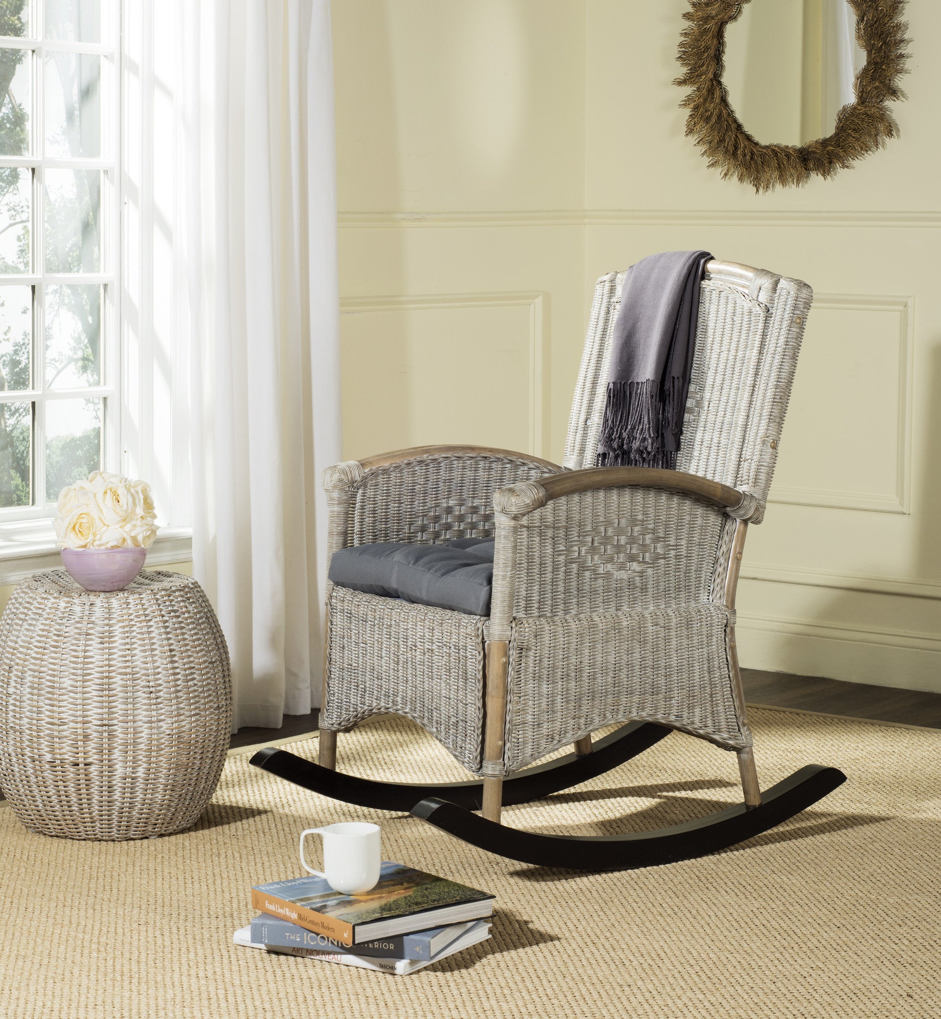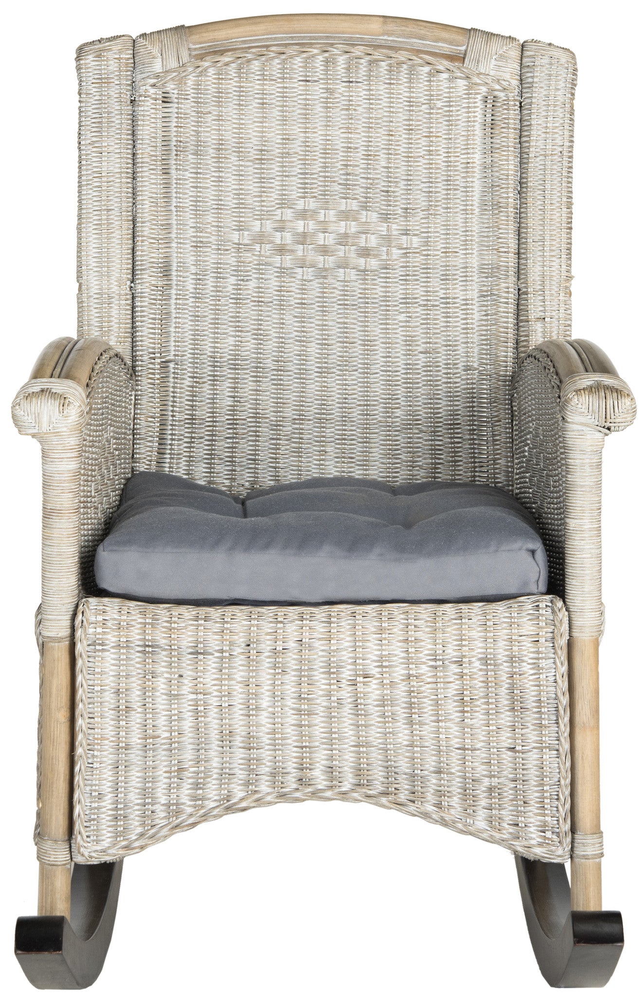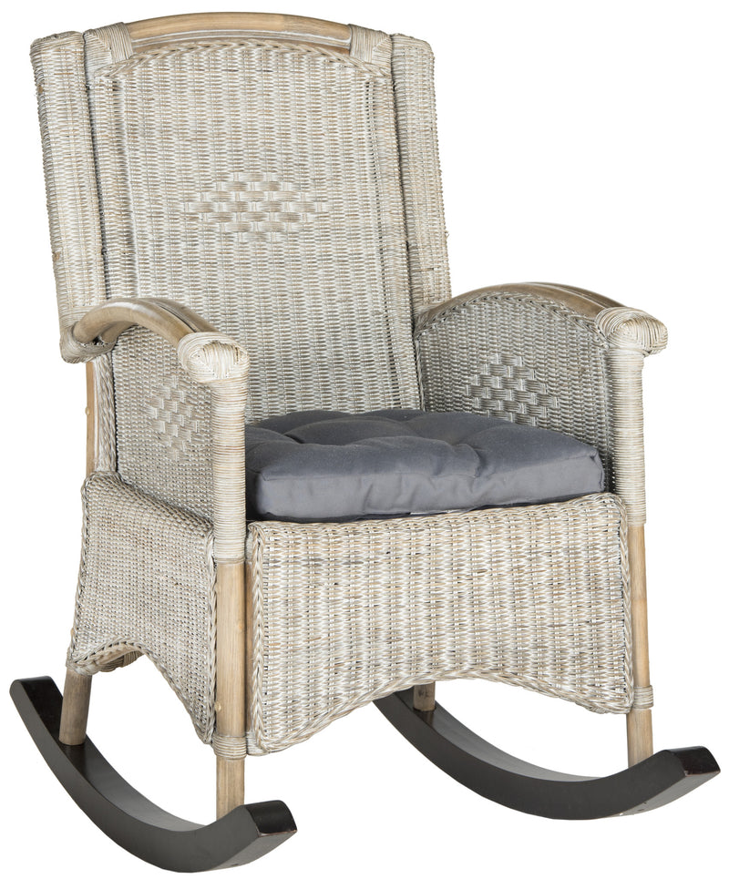 Perched on the porch of Cape Cod䋢s most charming home is the antique that inspired this classic wicker rocking chair. Its welcoming, ample seat and gentle curves sooth the modern soul, while its neutral grey color is ideal for any decor.