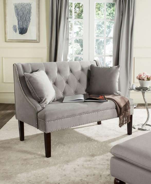 Safavieh Zoey Velvet Settee W/ Silver Nailheads
