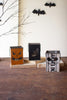 Grab this spooky set of three Halloween lanterns. They come in one of each orange, black, and white. They are all the same size and made of recycled metal in India.