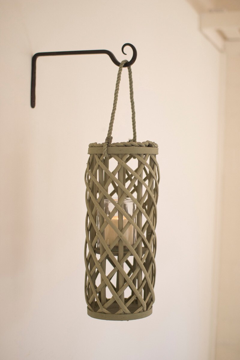 Set Of Three Short Willow Lanterns With Glass Inserts - One Each Color By Kalalou