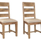 | Set of 2 dining chairs. A rustic natural coloration and ladder back design gives these chairs some modern farmhouse vibes. |