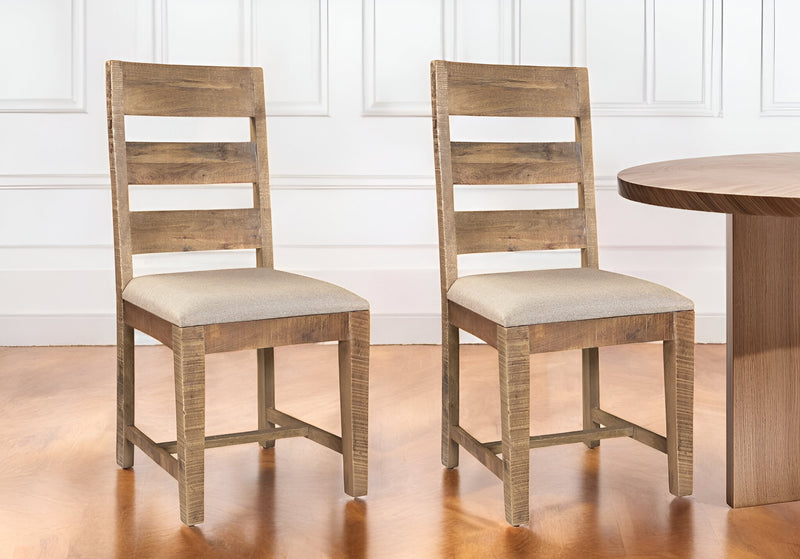Set of Two Beige And Brown Upholstered Fabric Ladder Back Dining Side Chairs By Homeroots