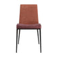 | Contemporary dining chairs with metal legs and upholstered seats in brown fabric upholstery. |