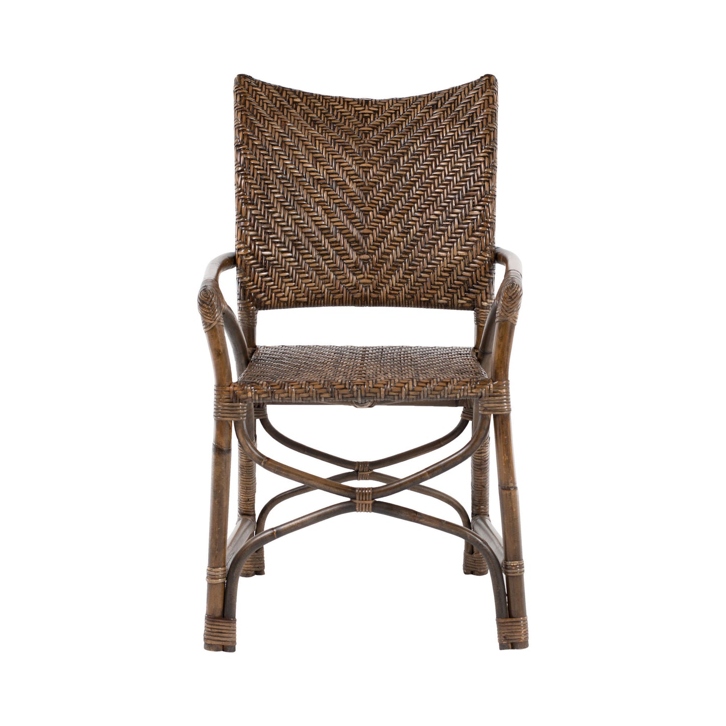 Set of Two Brown Rattan Open Back Dining Arm Chairs By Homeroots