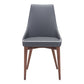 This set of two gray and brown upholstered faux leather windsor back dining side chairs is not only good looking, but it also provides long lasting support. This armless chair has a sleek silhouette making it ideal for seating around the table but can also double as an accent chair. Complete with windsor back, this chair not only looks good but is comfortable. Dining chairs are a great way to compliment your kitchen or dining room but can also be used in the foyer, hallway, or any room you might need extra seating. 35.8-inch H x 19.7-inch W x 22.8-inch D
