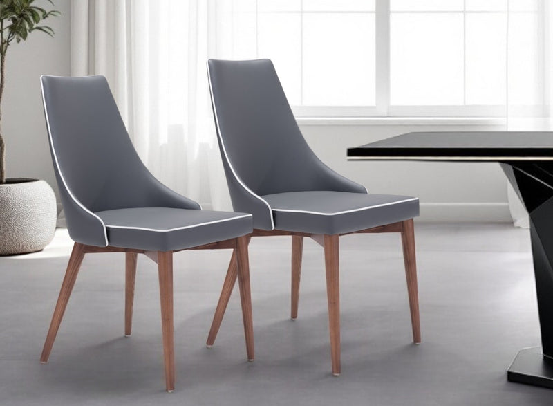 Set of Two Gray And Brown Upholstered Faux Leather Windsor Back Dining Side Chairs By Homeroots