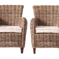 Set Of Two Natural Brown Rattan Wingback Wicker Chairs with Seat Cushions By Homeroots