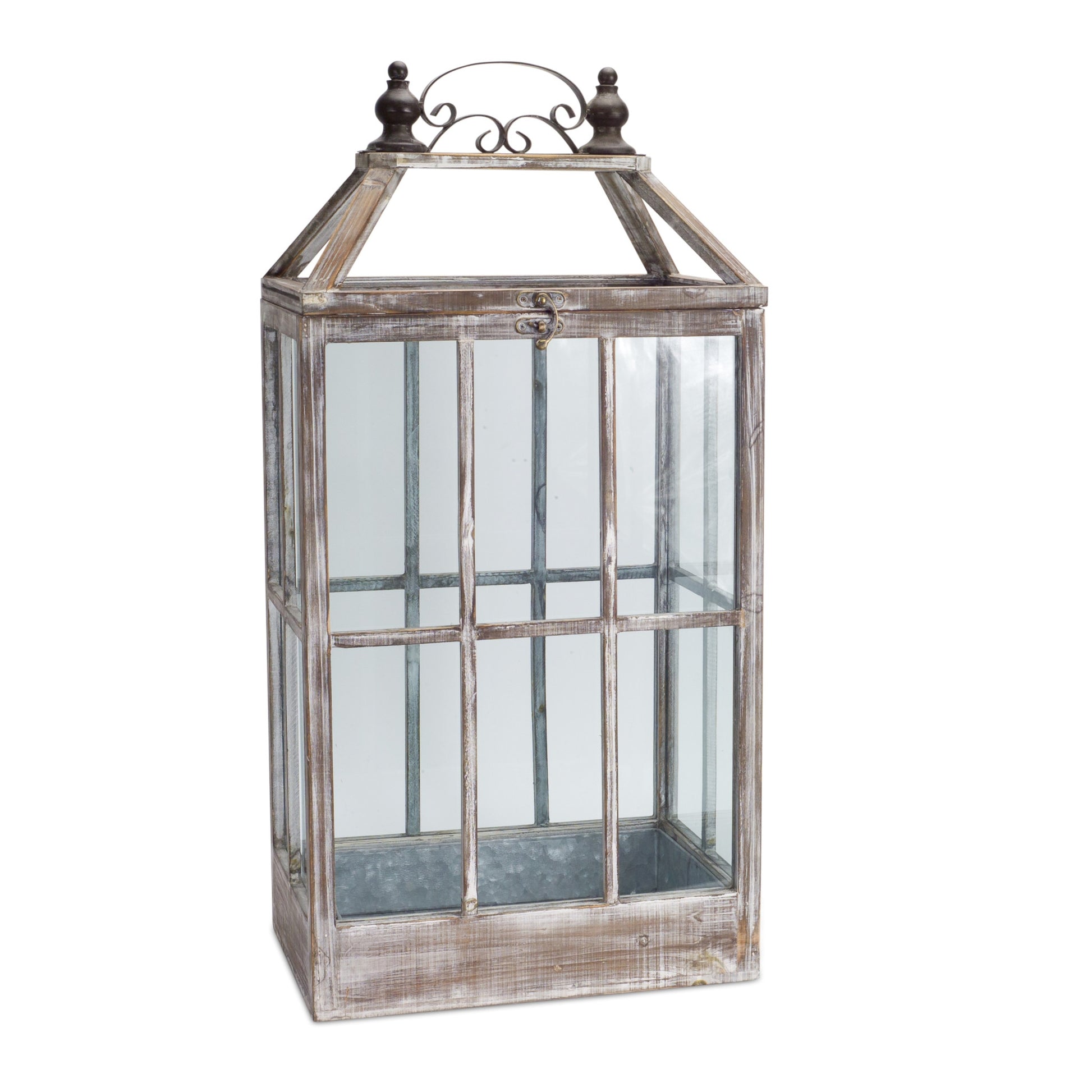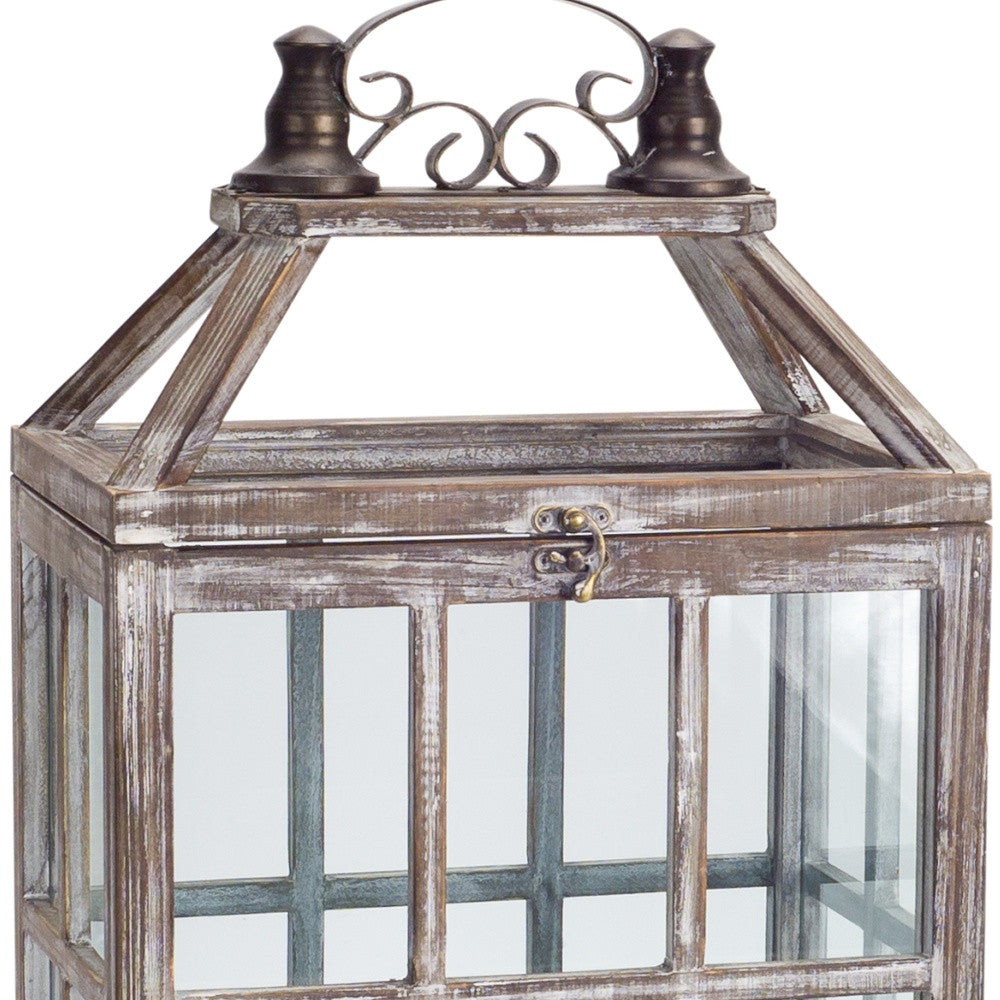 You can showcase this set of two white washed wood and glass floor lantern candle holders on its own as alternative centerpieces or position it among flower arrangements on your tables. A perfect functional and decorative accent piece for weddings, dining tables and living rooms alike. This candleholder is the perfect illuminating design to accent your space in style. Candleholders are a decorative accent on their own. They are also an attractive way to turn a simple candle into a piece of dŽcor on its own. 22.8-inch H x 7.5-inch W x 12-inch D
