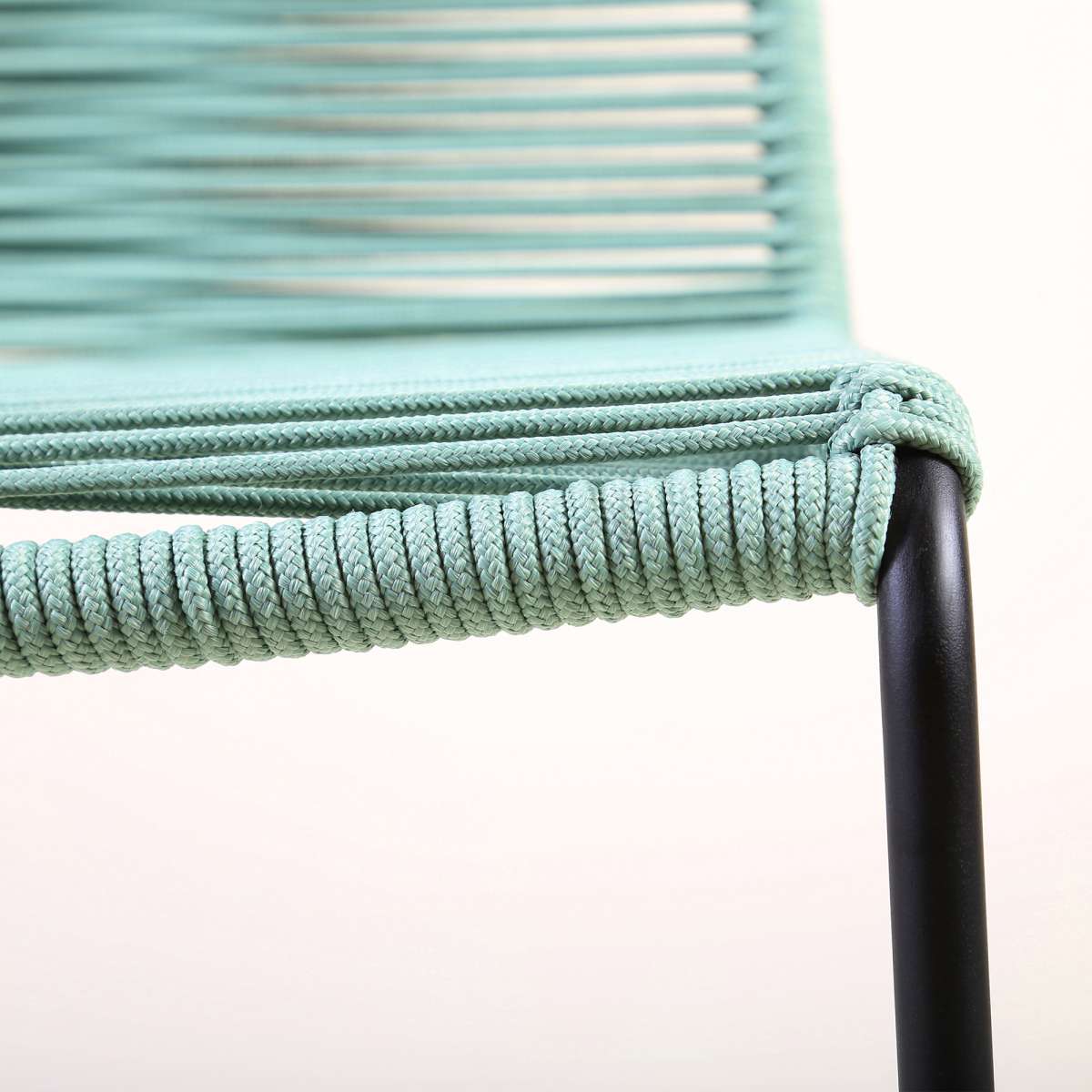 | ROPE WEAVE: The Shasta Outdoor Metal and Rope Stackable Dining Chair - Set of 2 features an intricate rope weave design that provides an incredibly durable and unique appearance. The handcrafted details of this material allow this piece to blend seamlessly with your outdoor décor. |