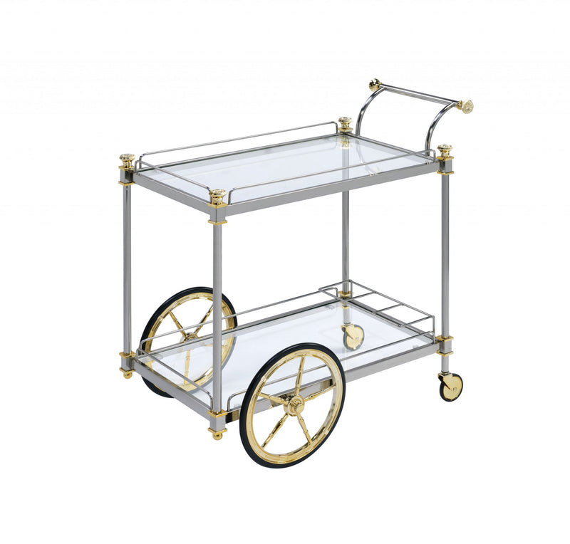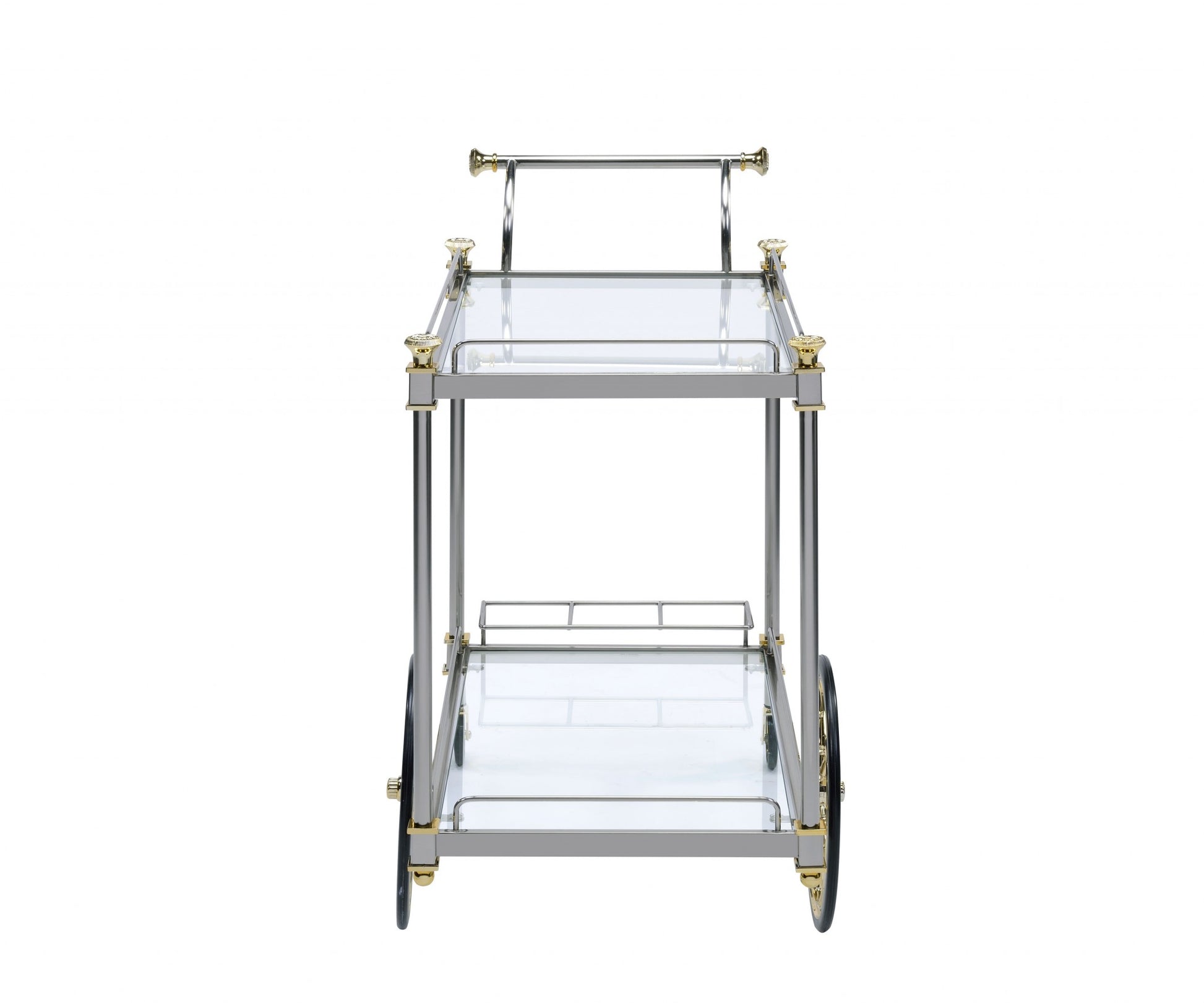 Silver Gold Clear Glass Metal Casters Serving Cart By Homeroots