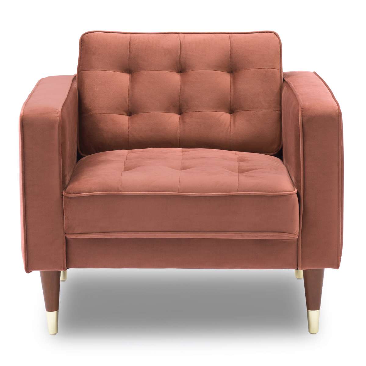 The Somerset Velvet Mid Century Modern Club Chair adds a touch of luxury to any home. Designed for elegant, comfortable living, this contemporary tufted accent chair is a classic. Its generous proportions are upholstered in sumptuous velvet with luxurious tufted detail. The gold-finished caps on its tapered wooden legs add fun retro flair. The Armen Living Somerset Velvet Mid Century Modern Collection features a sofa, loveseat and sectional sofa. This Club Chair is available in your choice of Blush or Gray velvet upholstery.
