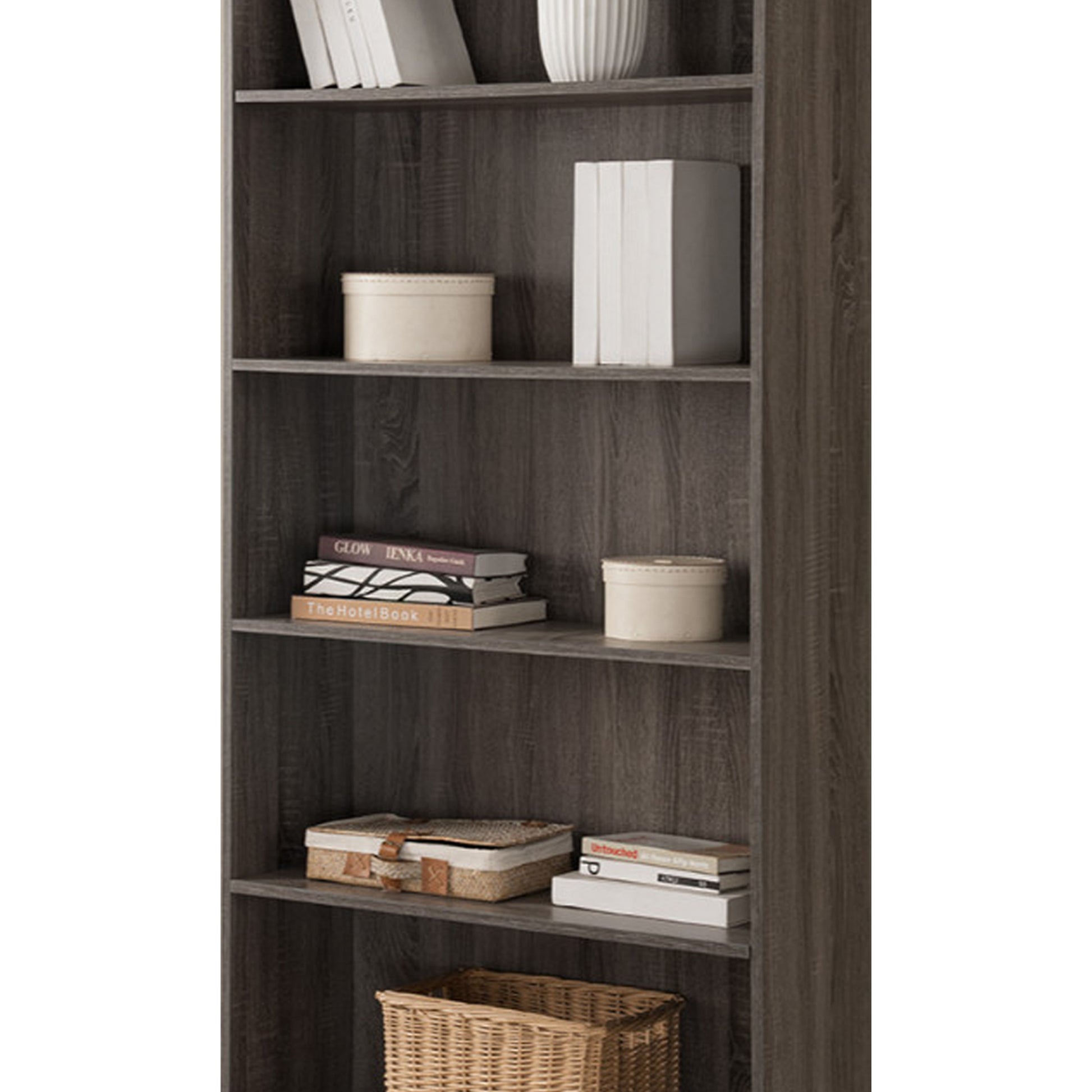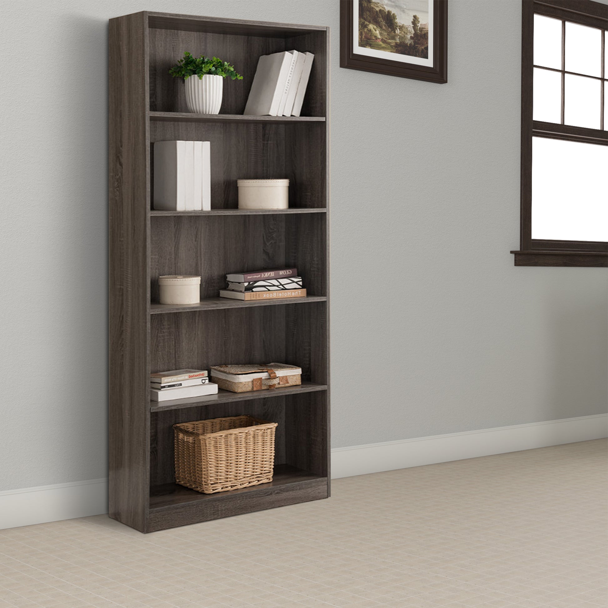 Bookcases aren't just for stowing books, so you can put this piece to work anywhere in your home. It has a solid construction and gray finish adding to its glory. Its five shelves are perfect for much-needed extra storage or display space. Keep it in the home to fill it up with framed family photos and antique serve ware for the perfect dining room anchor. You might also add a few woven bins to bring order to your craft supplies in the office. It includes five spacious shelves.