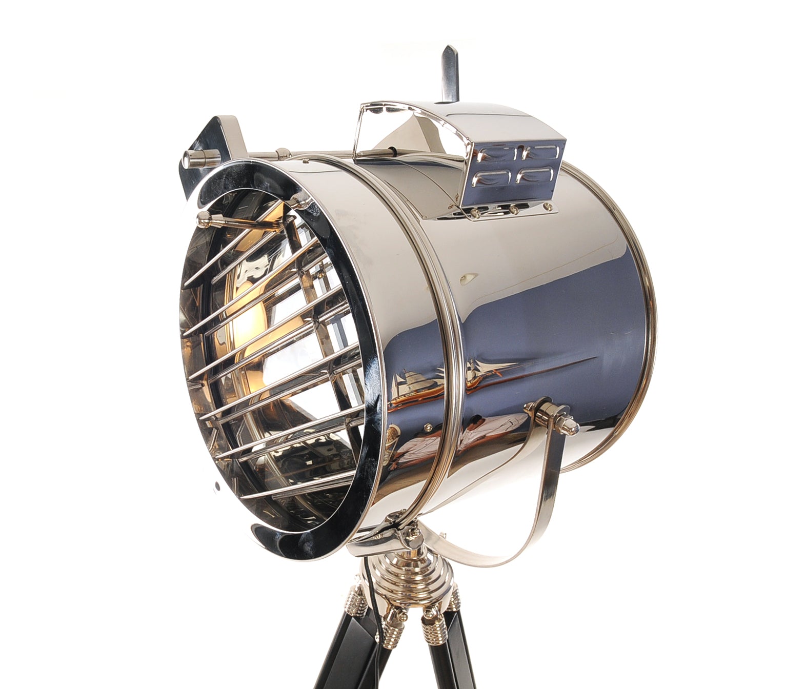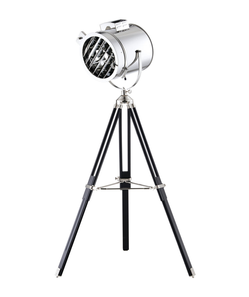 Get the trending industrial look in the comfort of your home and office! This large spotlight floor lamp fits well in every corner of the room and works great over your favorite reading chair. The legs can be extended by 68 inches for the versatility that you need. Material: Stainless Steel, Wood, and Glass Type of bulb base: E26 Maxed Watts: 40W