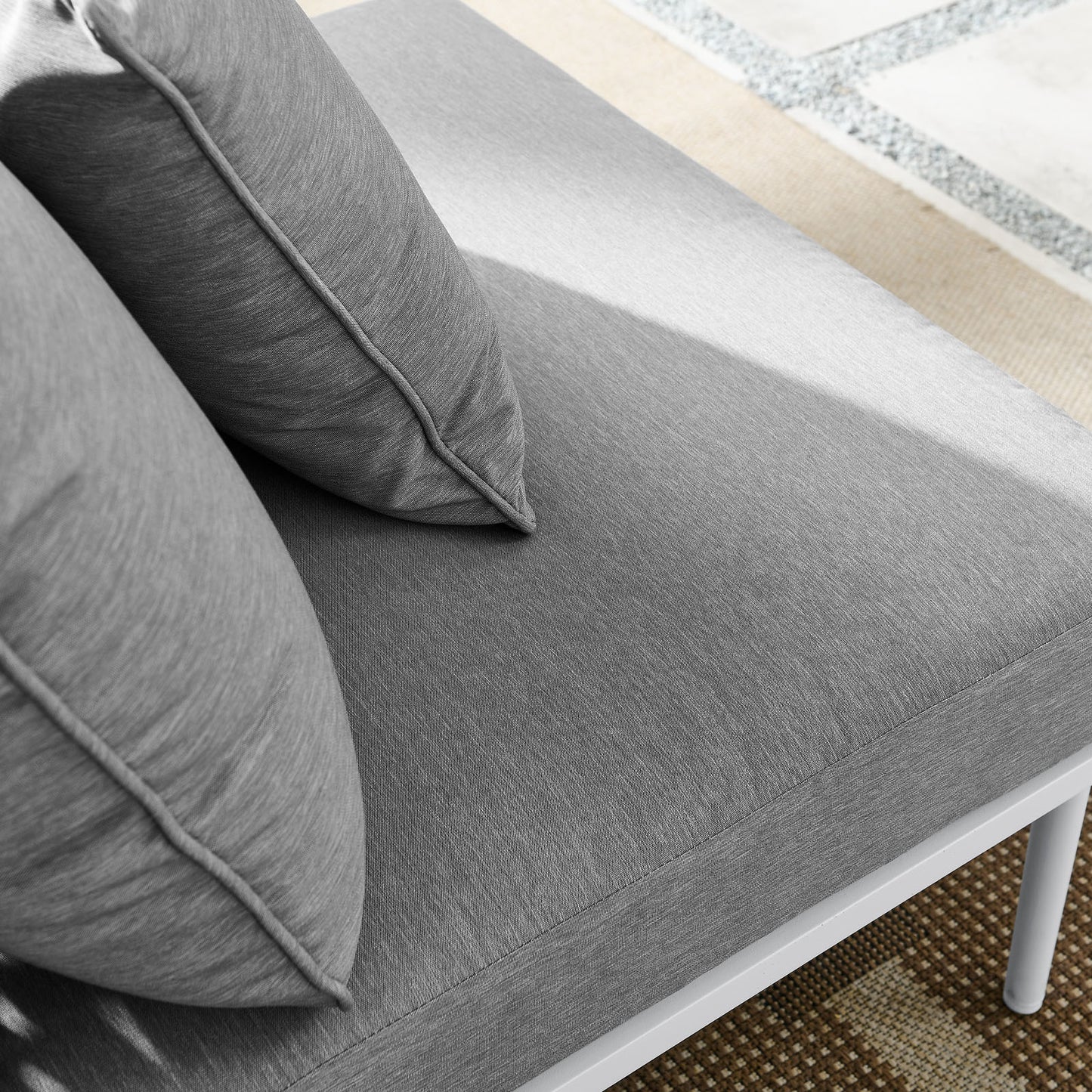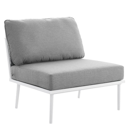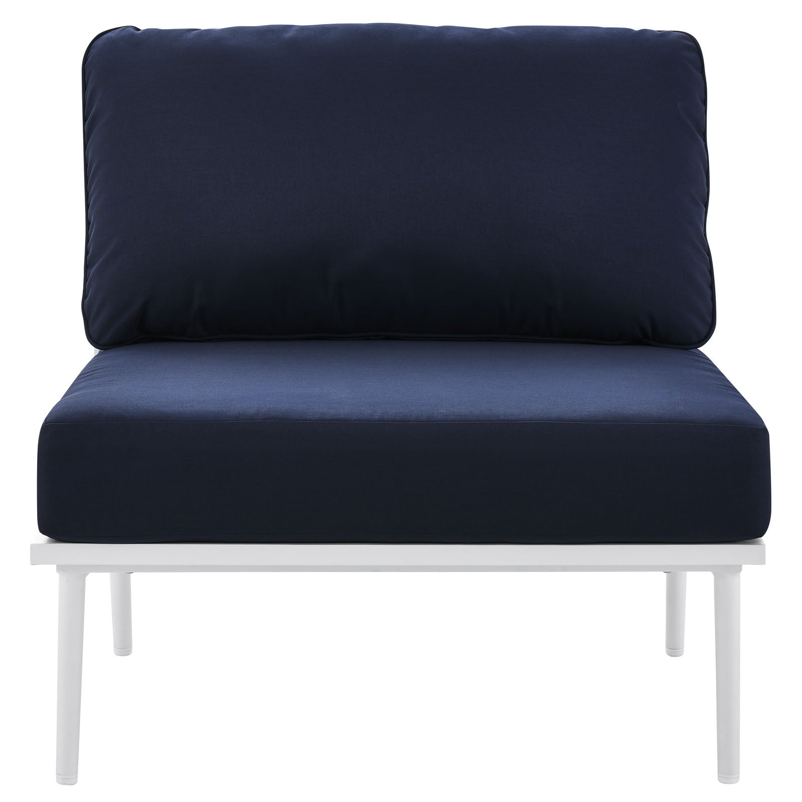 Gather family and friends for pleasant weather and good conversation with the Stance Outdoor Patio Armless Chair. Boasting a contemporary modern look, the Stance Armless Chair features a woven polyester fabric rope seat back and flared powder-coated aluminum frame, while water resistant all-weather fabric cushions with dense foam padding provide a relaxing spot to lounge. This is a versatile patio armless chair designed for long-lasting durability. Each piece "the Stance Outdoor Collection can be mixed and matched and effortlessly arranged to fit the spontaneous needs of you and your guests. Stance includes non-marking, height-adjustable foot caps. Assembly Required. Chair Weight Capacity: 331 lbs.
