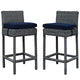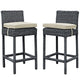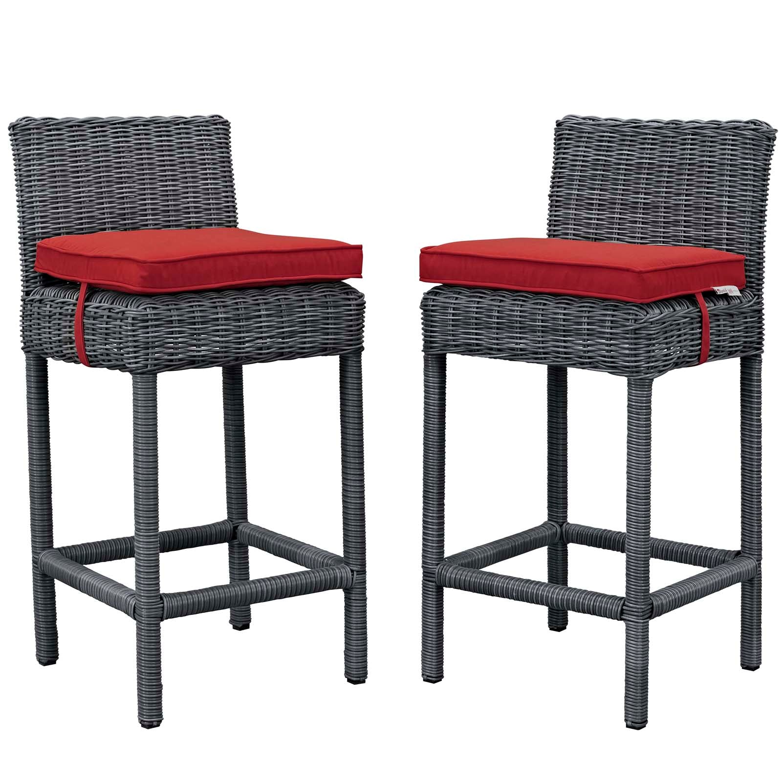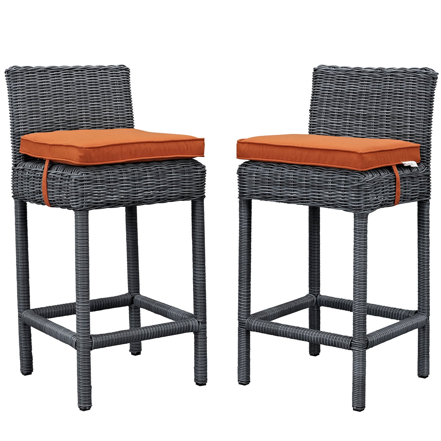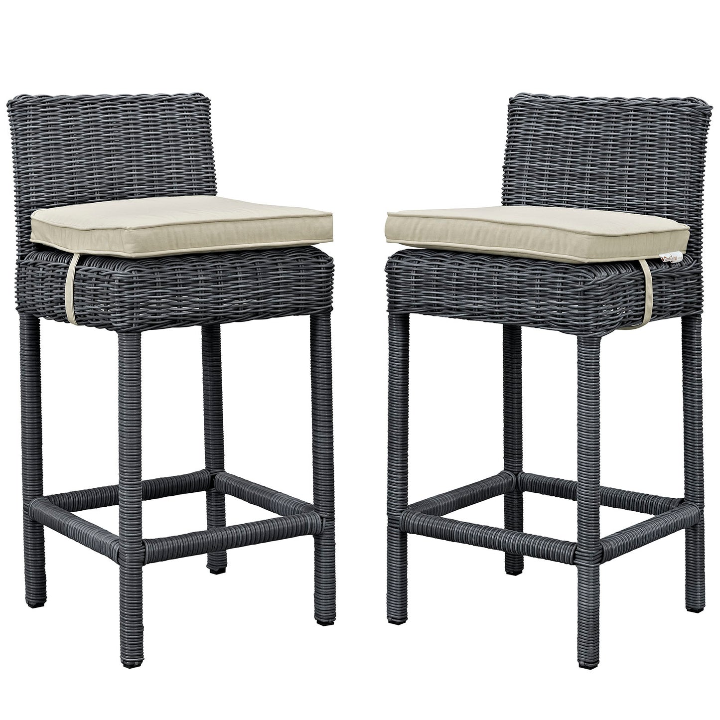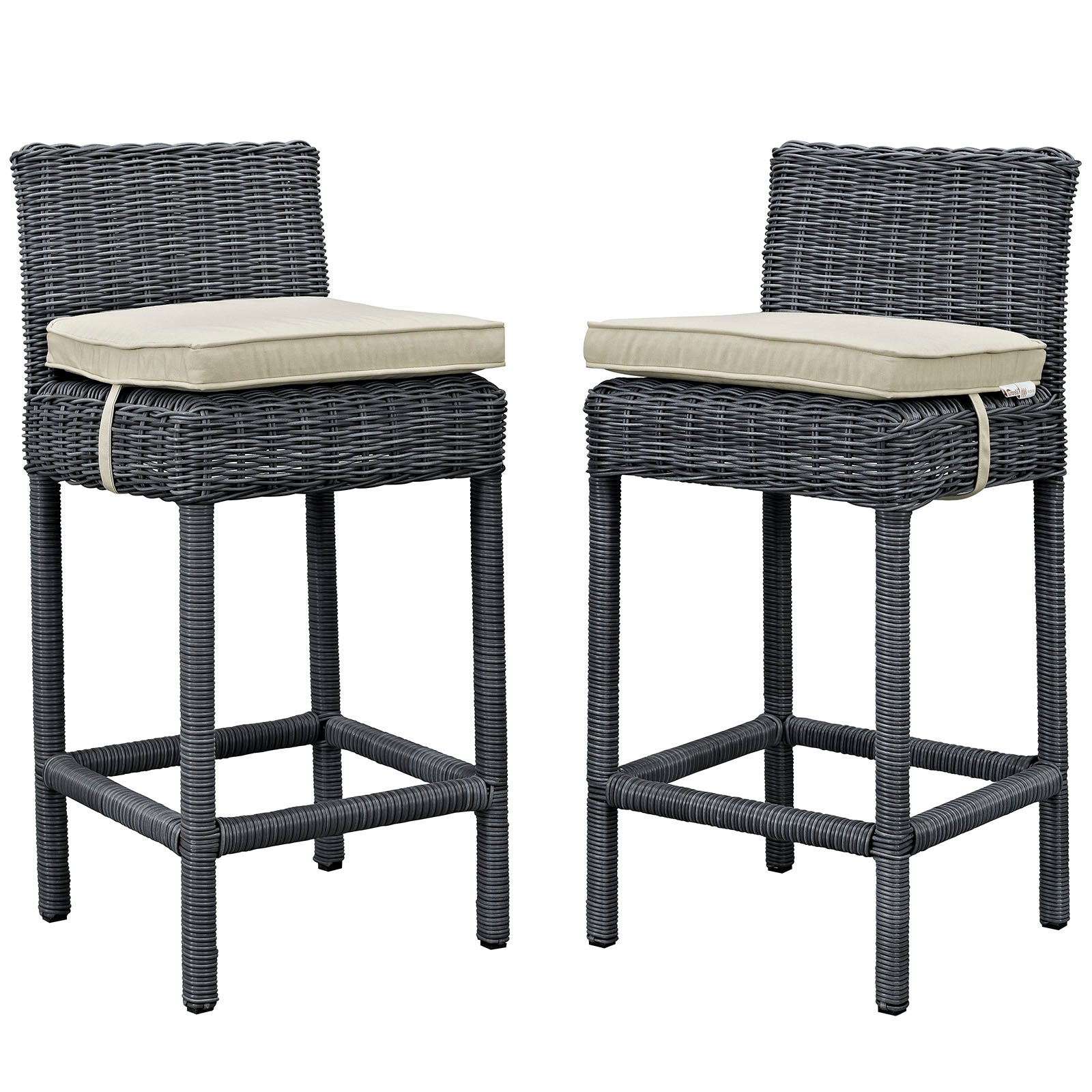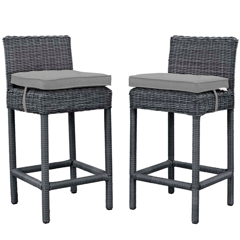 Experience the outdoors with exceptional comfort and quality. Summon Outdoor Patio Bar Stool offers an exquisite two-tone synthetic rattan weave, plush all-weather cushions with industry-leading Sunbrella® fabric, UV protection, and a sturdy powder-coated aluminum frame. Featuring an elegant modern look, Summon Patio Bar Stool is part of an avant-garde outdoor sectional series well-equipped for enhancing patio, backyard, or poolside gatherings. This installment of the series is an Outdoor Patio Bar Stool.