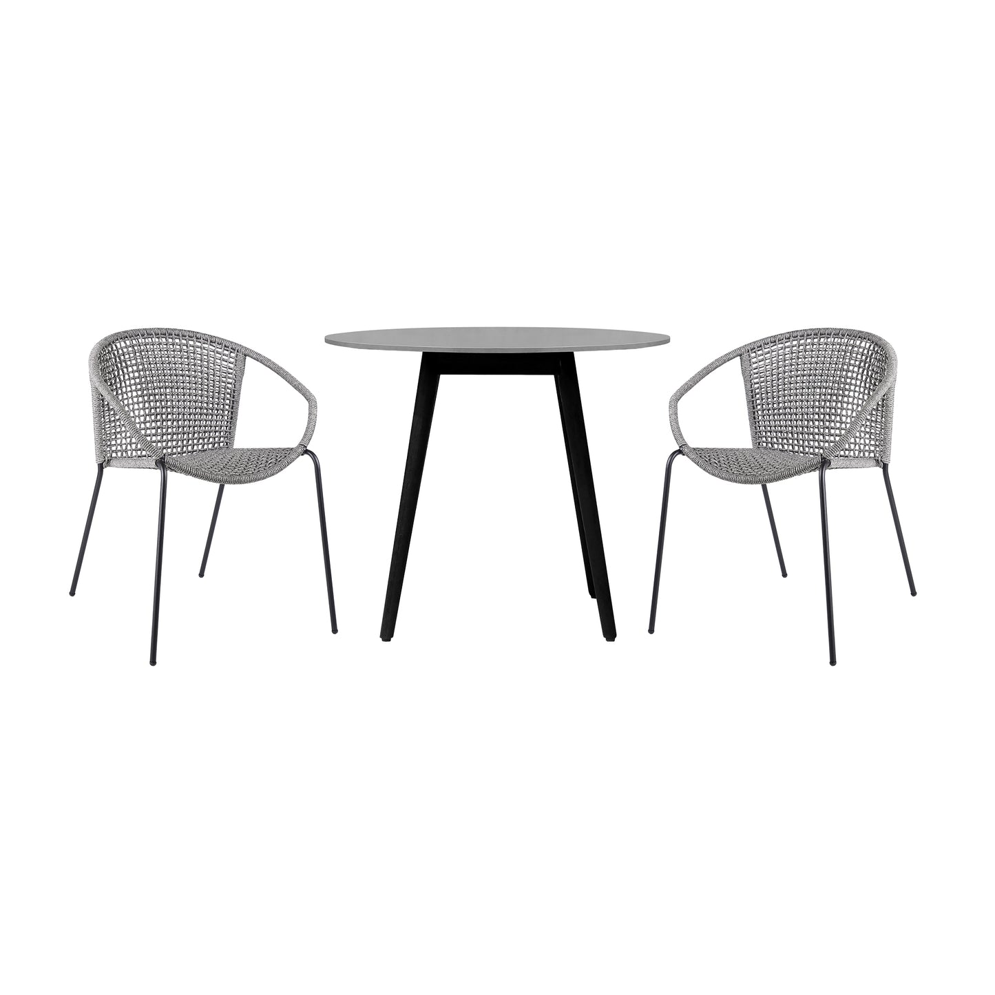 Sydney and Snack 3 Piece Outdoor Patio 36" Dining Set in Black Eucalyptus Wood and Grey Rope By Armen Living