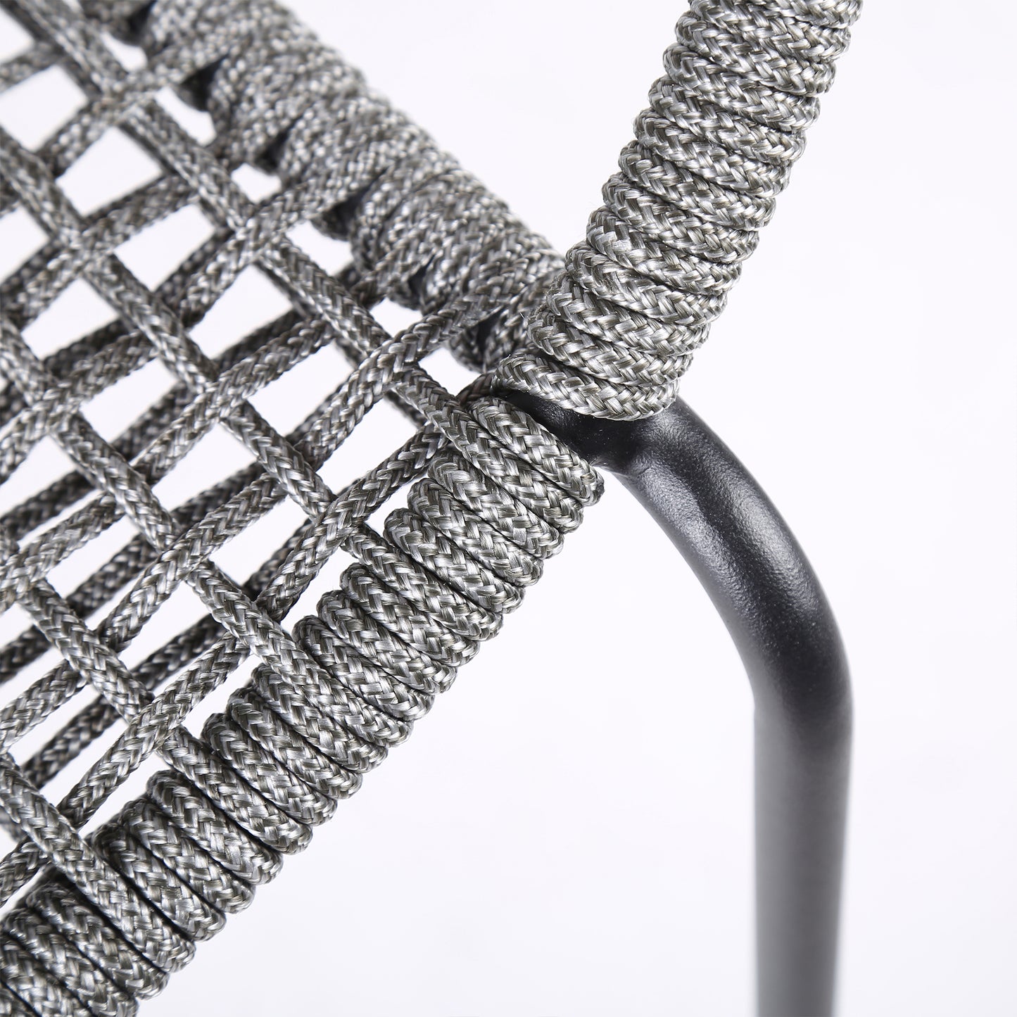 The Sydney and Snack 3 Piece Outdoor Patio Dining Set from Armen Living is a perfect addition to any outdoor space! The mixed materials work well together and create a fun and cohesive dining set for your front porch, back yard, pool side space, or patio. Constructed from eucalyptus wood and a grey super stone top, the 36-inch round dining table is a modern addition that easily fits into any space. This patio dining table features sleek tapered wood legs that allow for ample leg room. One of the best reasons to choose Eucalyptus wood for your outdoor furniture or four-seasons porch is that it is exceptionally resistant to decay and rot. It naturally resists the influence of moisture because of the high oil content it naturally contains. That means it can get damp without you worrying about whether damage will occur. It can withstand several different outdoor elements while lasting for many years if it receives proper care. Defined by functional simplicity and timeless beauty, the dining table delivers a harmony of natural textures to complement any outdoor space. The stone top features a 5-layer composite with 2 layers of cement fiberboard surrounding the aluminum honeycomb core. This beautiful tabletop is durable and robust - capable of withstanding inclement weather and everyday wear and tear. Featuring an elaborate woven design and durable metal frame, the snack dining chairs will blend seamlessly into your outdoor decor. The wide seat and back offer ample room for seating - creating a divine seating experience. These outdoor chairs feature a weather-resistant regatta cording tightly crosshatches the entire seat and back, providing supportive comfort so you enjoy time around the table with loved ones - also enhancing your seating experience with a softness that rivals most fabrics. Each chair is made with the best craftsmanship, with these chairs standing on top of durable metal legs in a black finish for a modern look. The Sydney and Snack 3 Piece outdoor dining set is available with a black eucalyptus finish on the table with a grey stone top, the snack chairs feature modern black metal legs and are available in your choice of grey, black, wasabi, or brick red rope.
