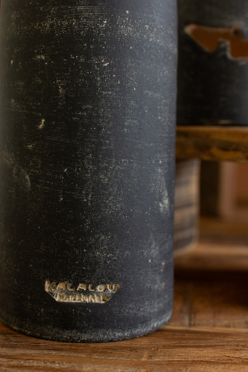 Tall Black Clay Jack-O-Lantern By Kalalou