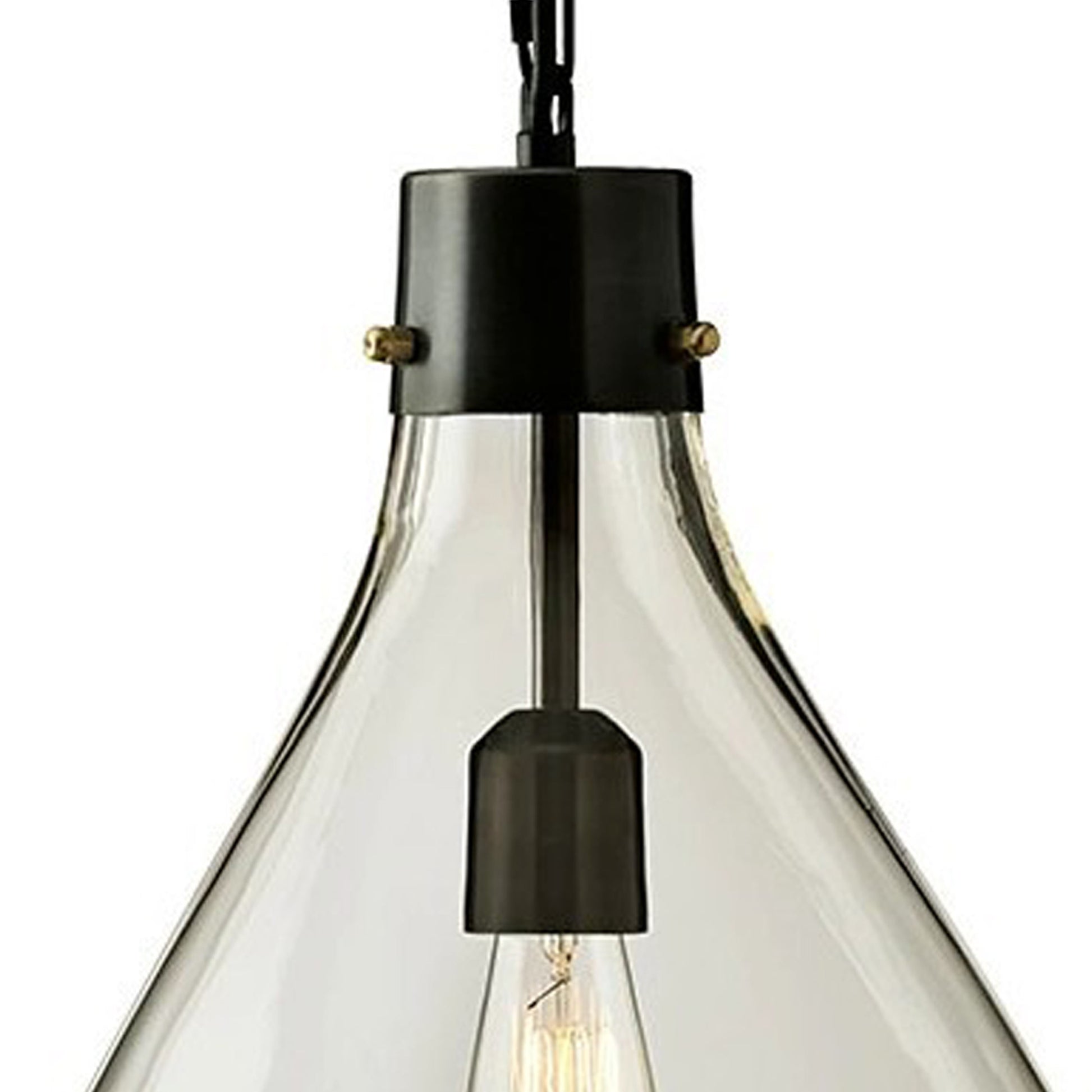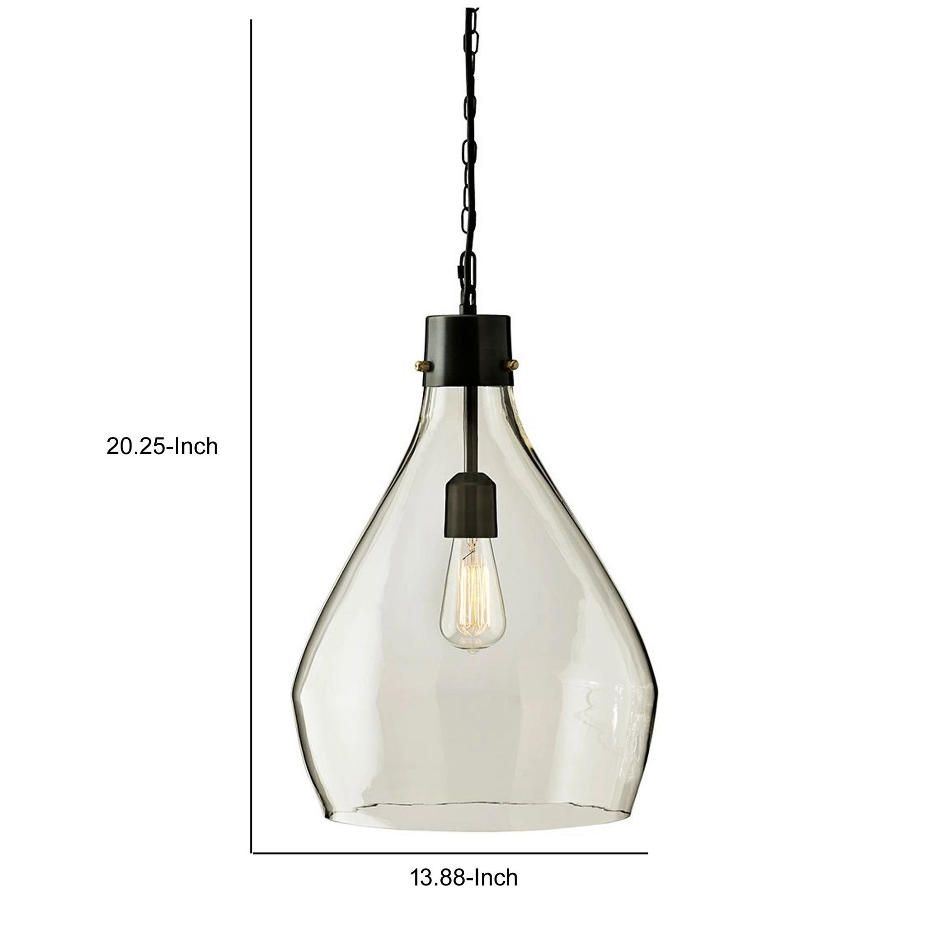 Teardrop Glass Pendant Lighting with Metal Chain, Clear and Black By Benzara